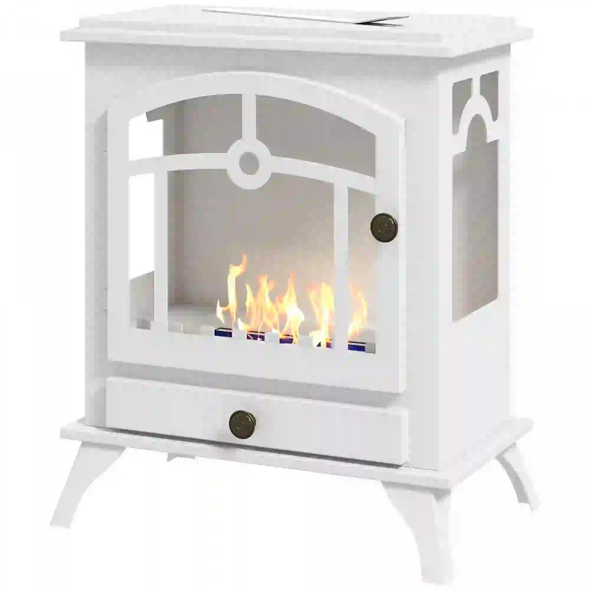 Estufa de Bioetanol de Pie con Tanque de 0,9 L Apagallamas de Acero Inoxidable Tiempo de Combustión 3H 45x28x54cm Blanco