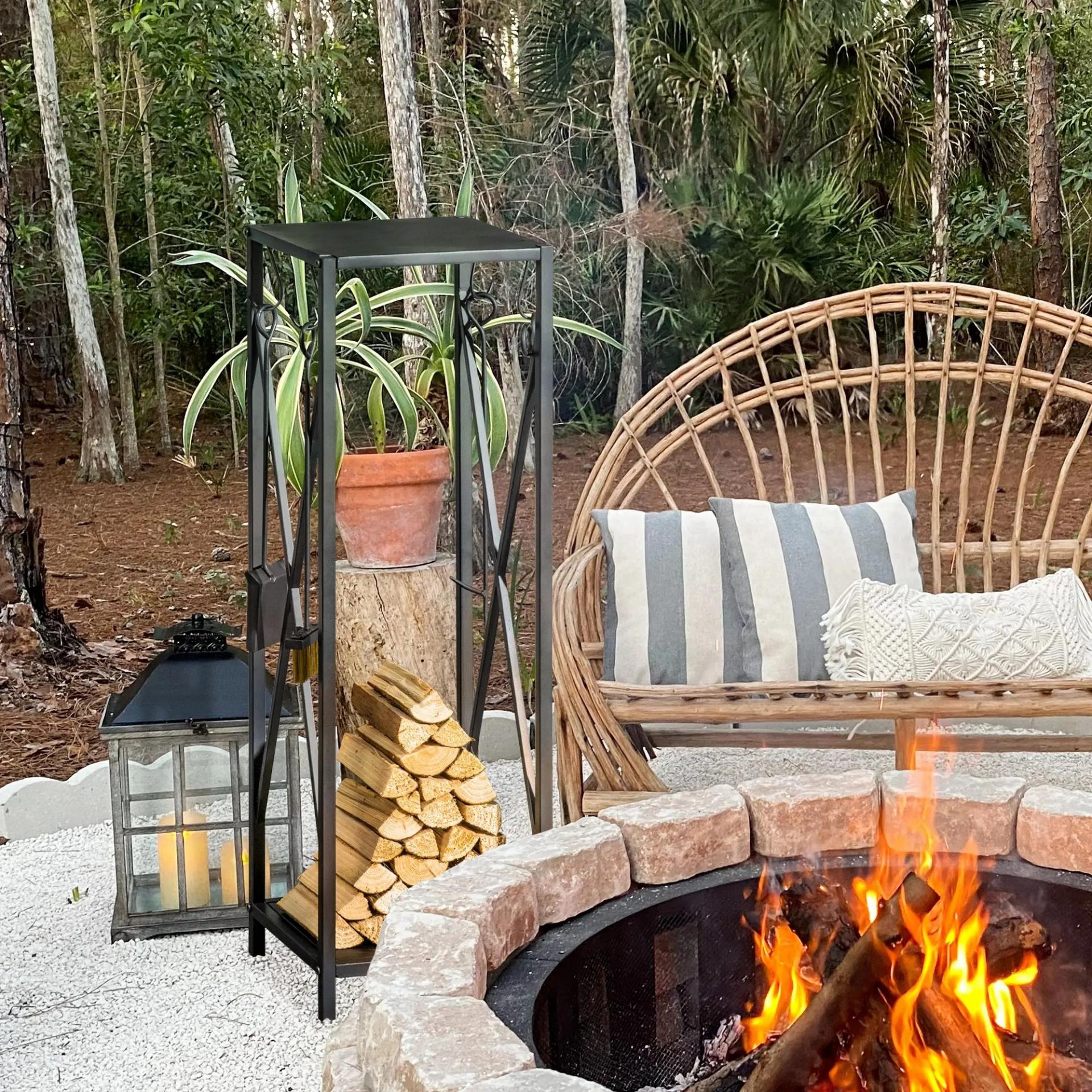 - ESTRUCTURA DE METAL: Fabricado en metal, esta portaleña para interior y exterior está diseñado para ofrecer una buena resistencia. Colócalo cerca de la chimenea en la sala de estar o al lado de una hoguera en el balcón o en la terraza