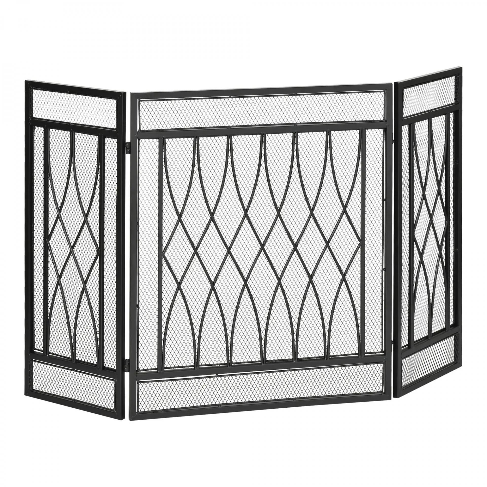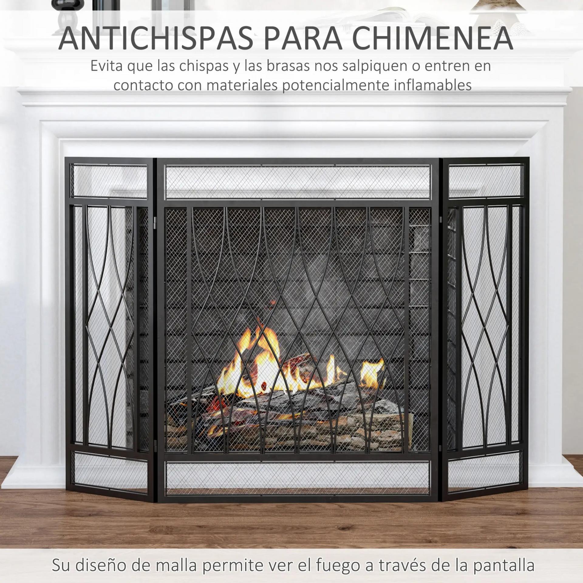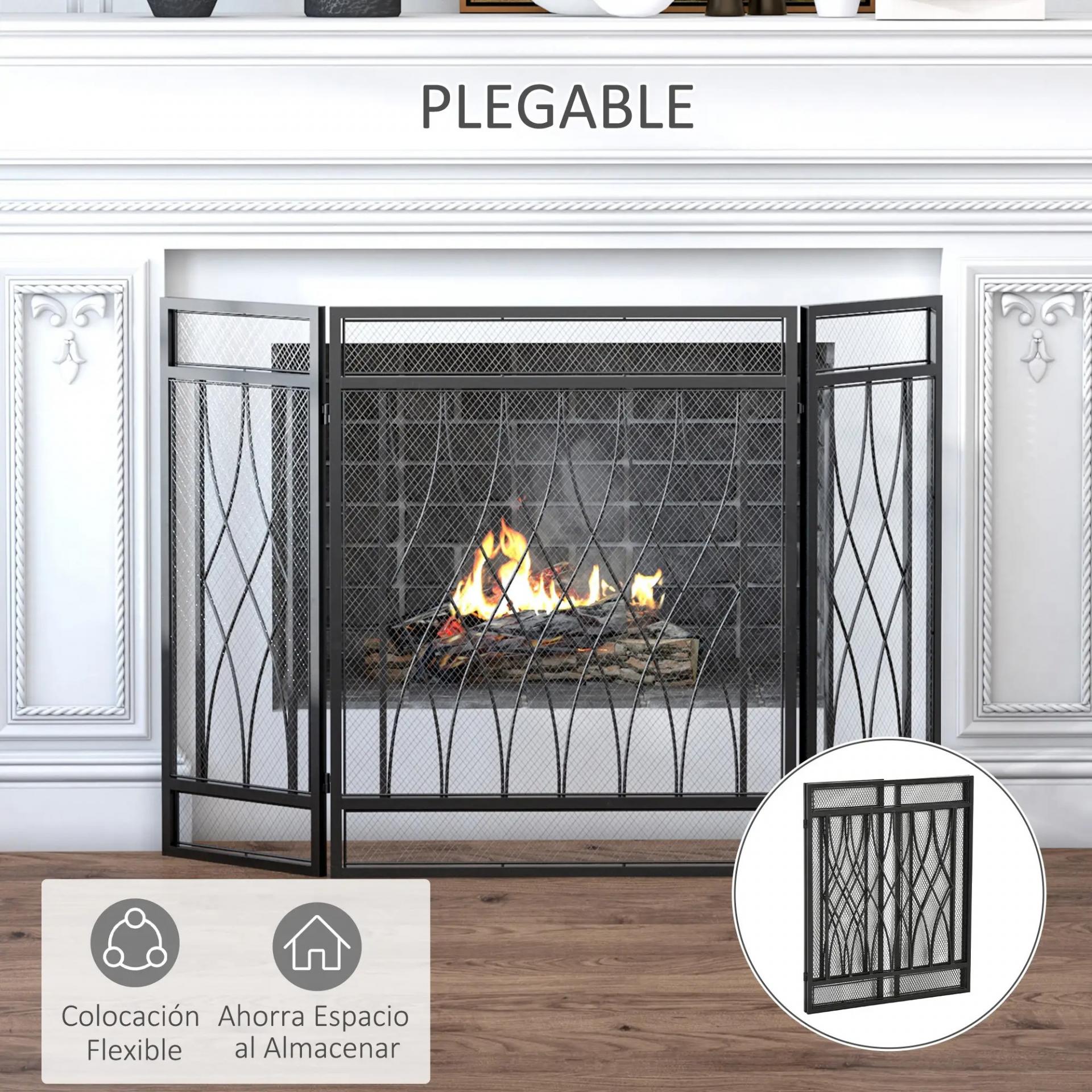 Pantalla Protectora de Chimenea Plegable de 3 Paneles con Bisagras y Estructura de Metal Decorativa 126x3x80 cm Negro