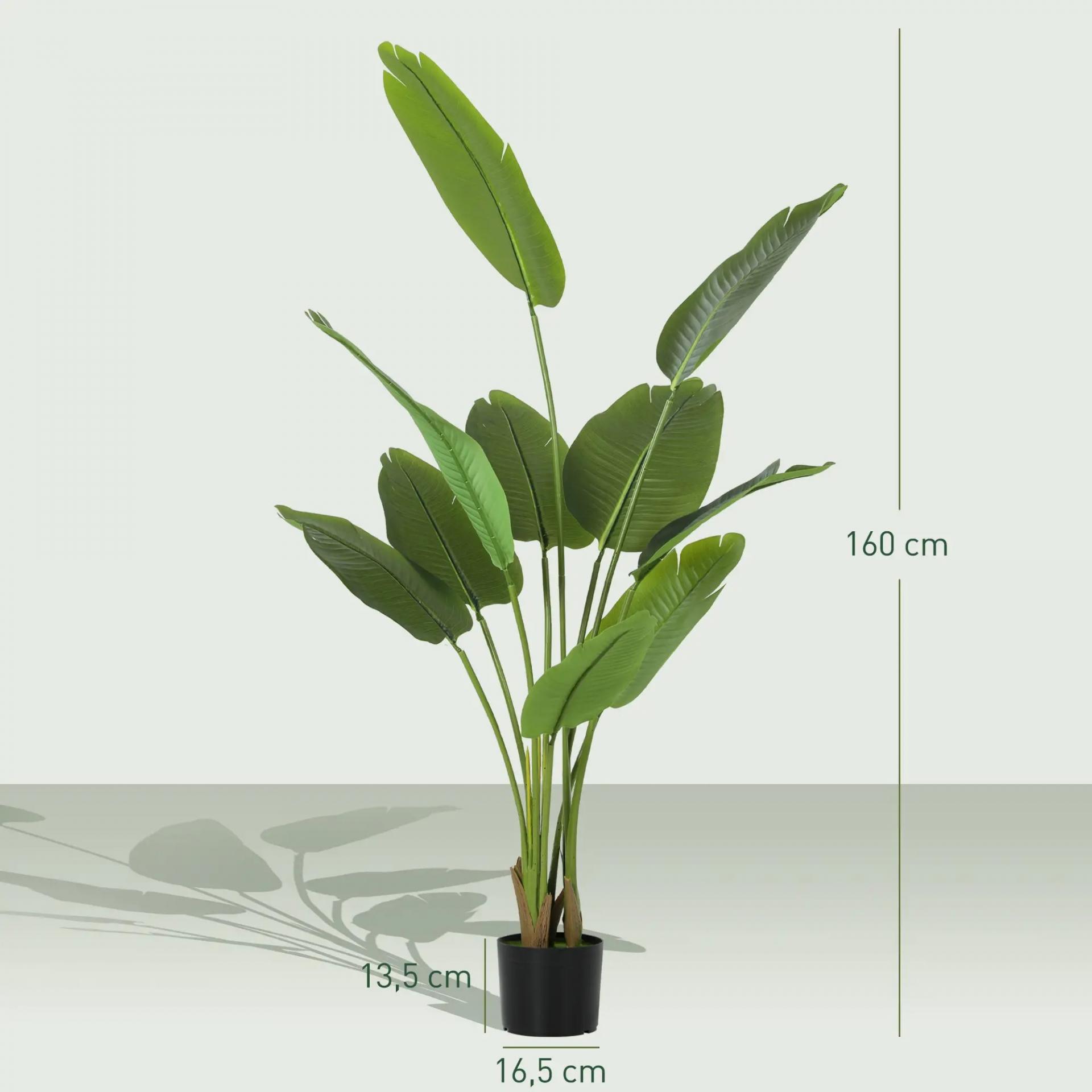 Planta Artificial Decorativa 160 cm Bananera Artificial con Maceta y Hojas para Interior Verde