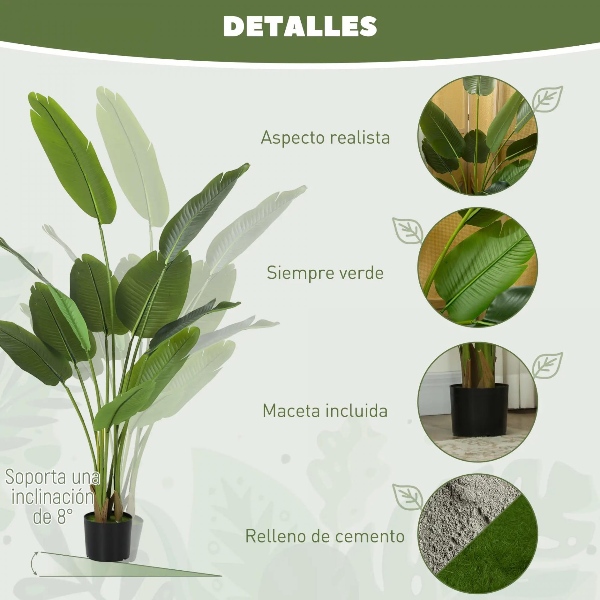 - ESTABILIDAD GARANTIZADA: La base con peso asegura que la platanera artificial se mantenga firme y estable, incluso en zonas de paso. Supera el test de inclinación de hasta 8°, brindando mayor seguridad