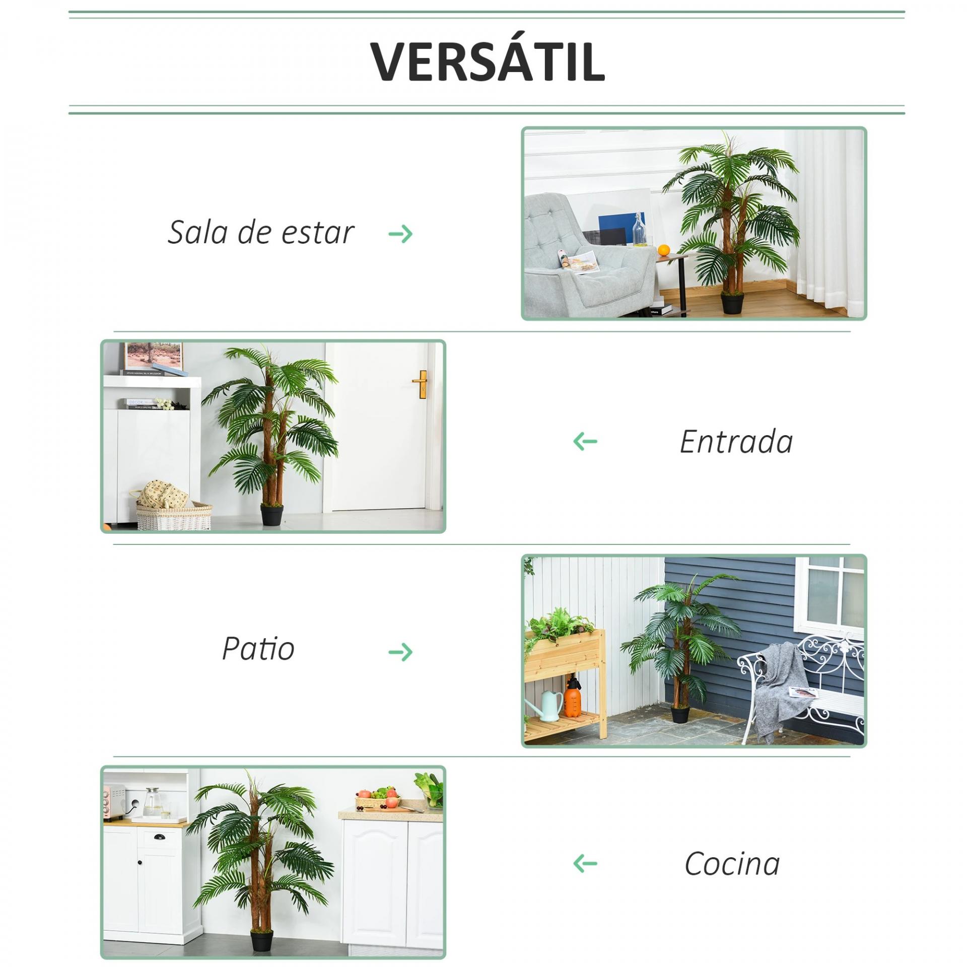 PALMERA ARTIFICIAL: Ideal para colocar en cualquier estancia de tu casa u oficina y aportar un toque de frescura y elegancia. Su estilo y encanto atraerá la atención de tus invitados o clientes. Apta para interior