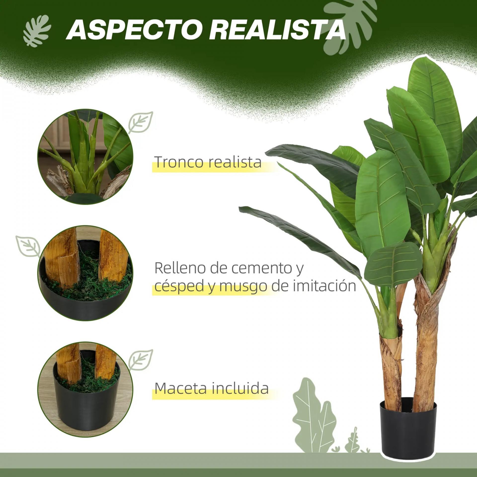 APARIENCIA REALISTA: Añade un toque de elegancia a tu espacio con esta planta artificial de bananero, cuya coloración y textura imitan perfectamente a una planta natural, creando un efecto decorativo muy realista