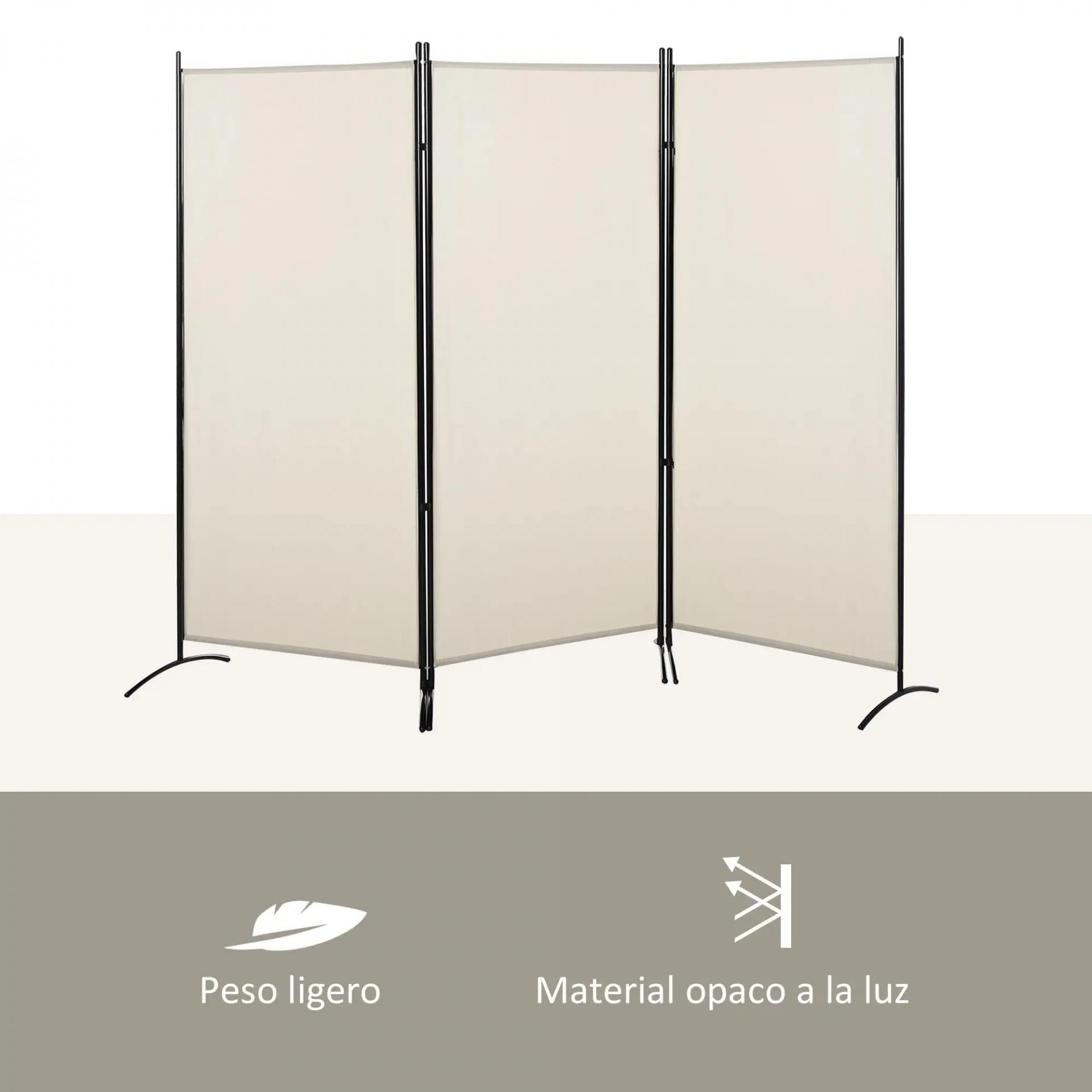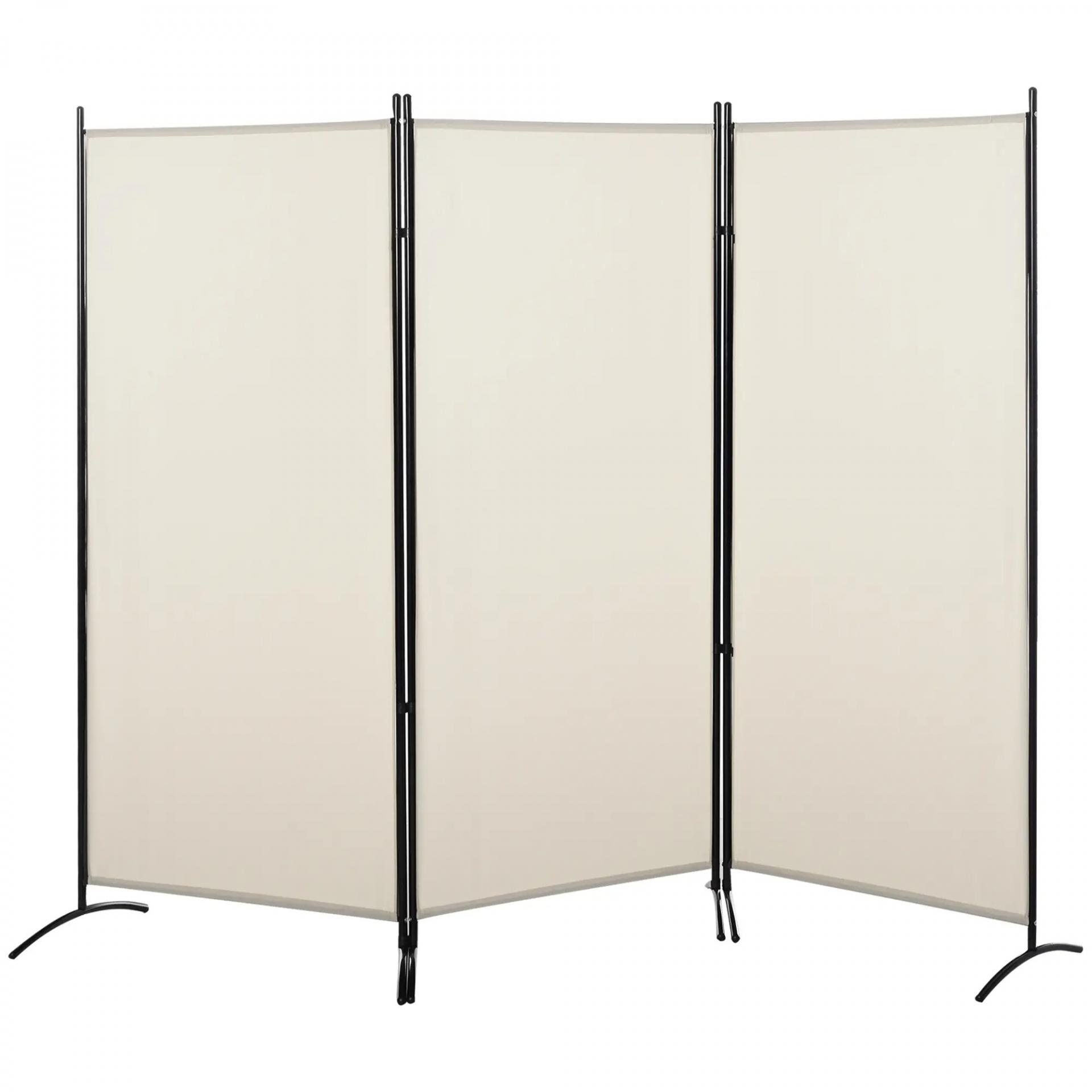 Biombo Separador de Ambientes de 3 Paneles 253x50x182 cm Divisor de Habitación Plegable con 6 Pies de Metal Beige