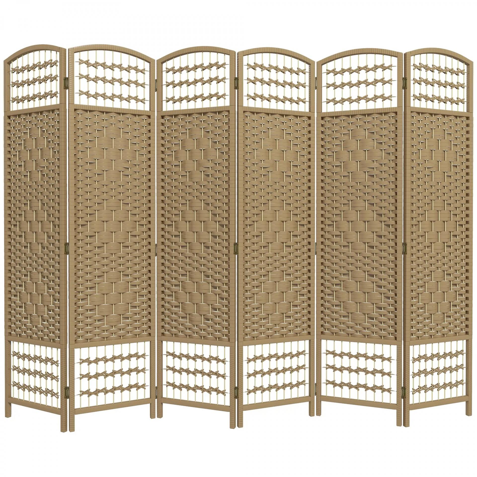 Biombo Separador de Ambientes de 6 Paneles Plegable de Cuerda de Papel 160x170cm Decoración para Dormitorio Natural