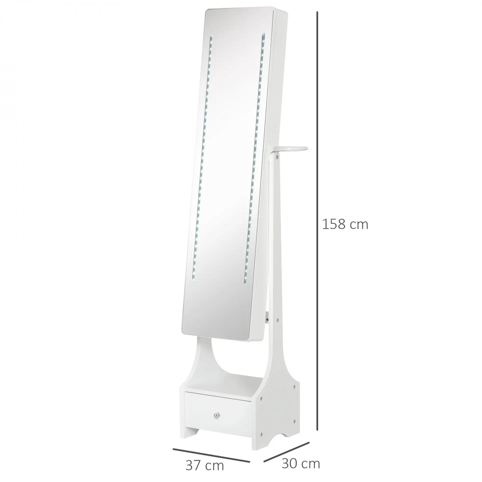 JOYERO INDEPENDIENTE CON ESPEJO: Este armario joyero con espejo de cuerpo entero con soporte de HOMCOM es la manera perfecta de organizar todas tus joyas y accesorios en casa. Hecho de tablero de MDF en acabado de color blanco y forro interior para mantener tus joyas seguras