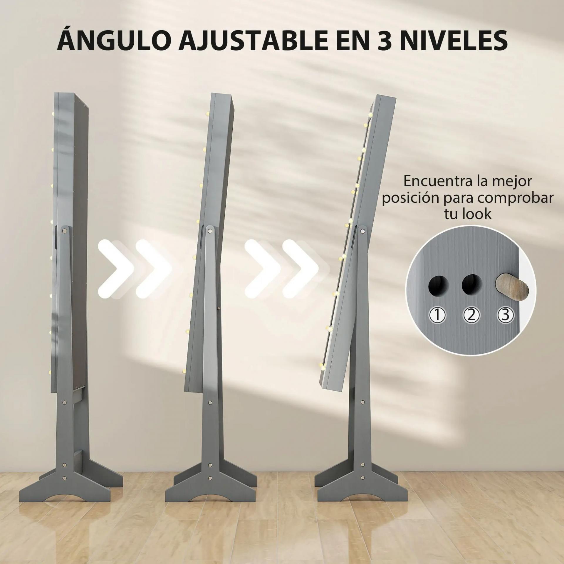 Espejo Joyero con Luces LED Armario para Joyas Armario Joyero de Pie con Espejo Entero Ángulo Ajustable Gris