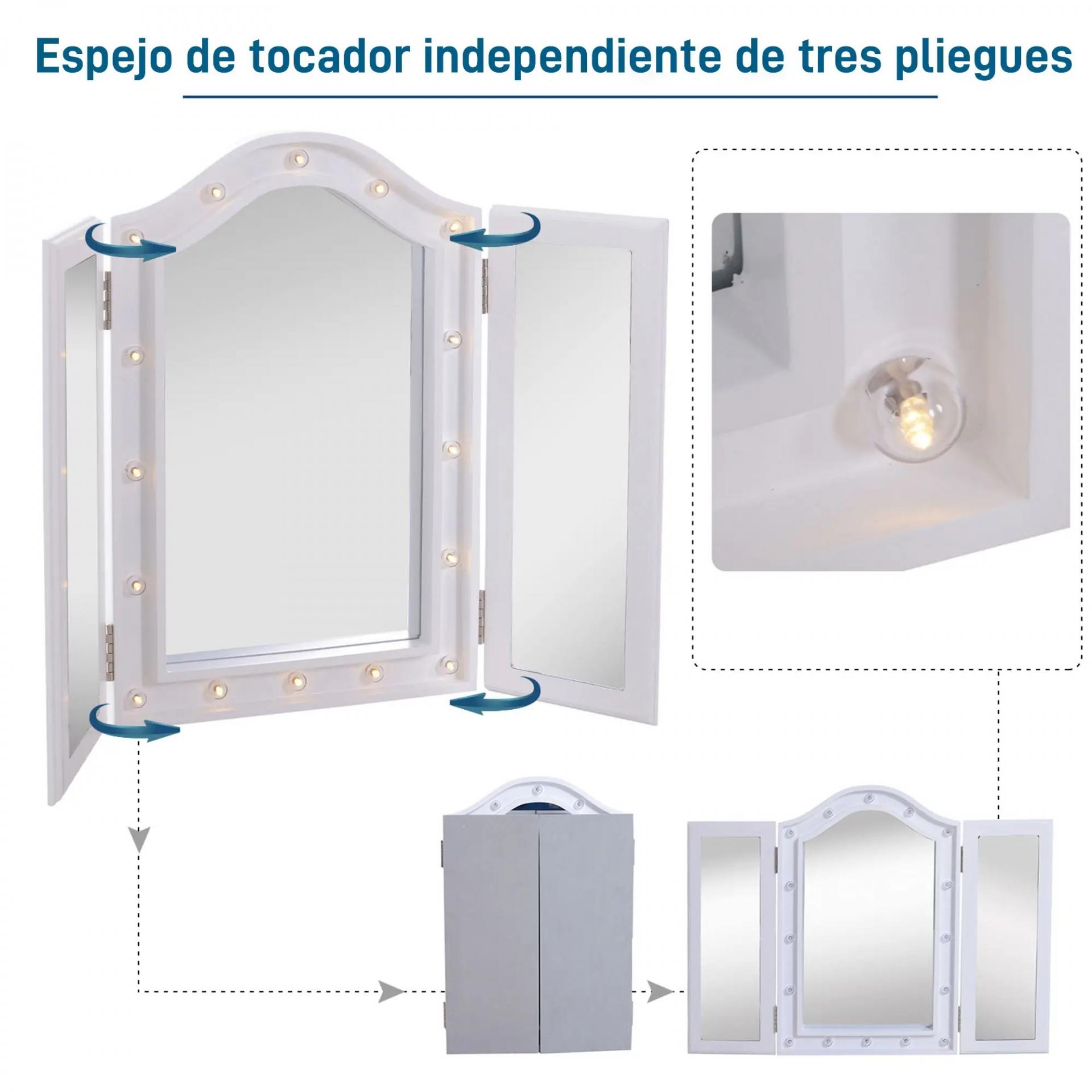 Espejo de Maquillaje con Luz LED Plegable Espejo Triple de Mesa Regalo Original para Mujer Cargo con Batería Espejo Cosmético con Iluminación 73x53.5x4.5cm