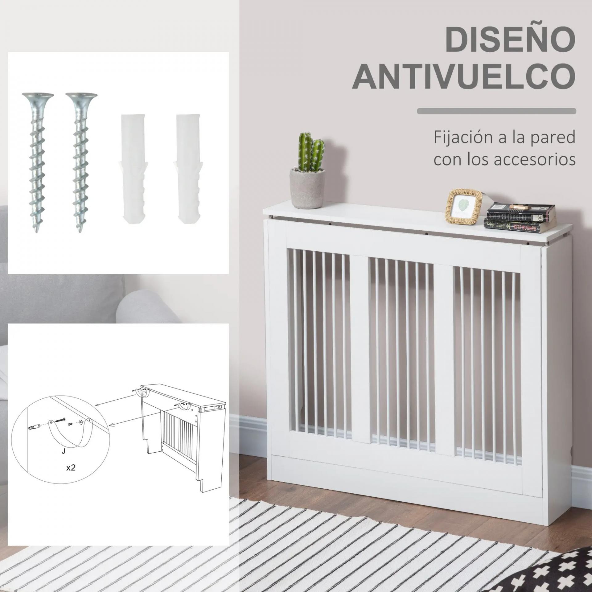 - DISEÑO ANTIVUELCO: Esta cubierta para el radiador viene equipada con un antivuelco, para que puedas instalarla de forma segura a la pared, evitando que se vuelque o tambalee