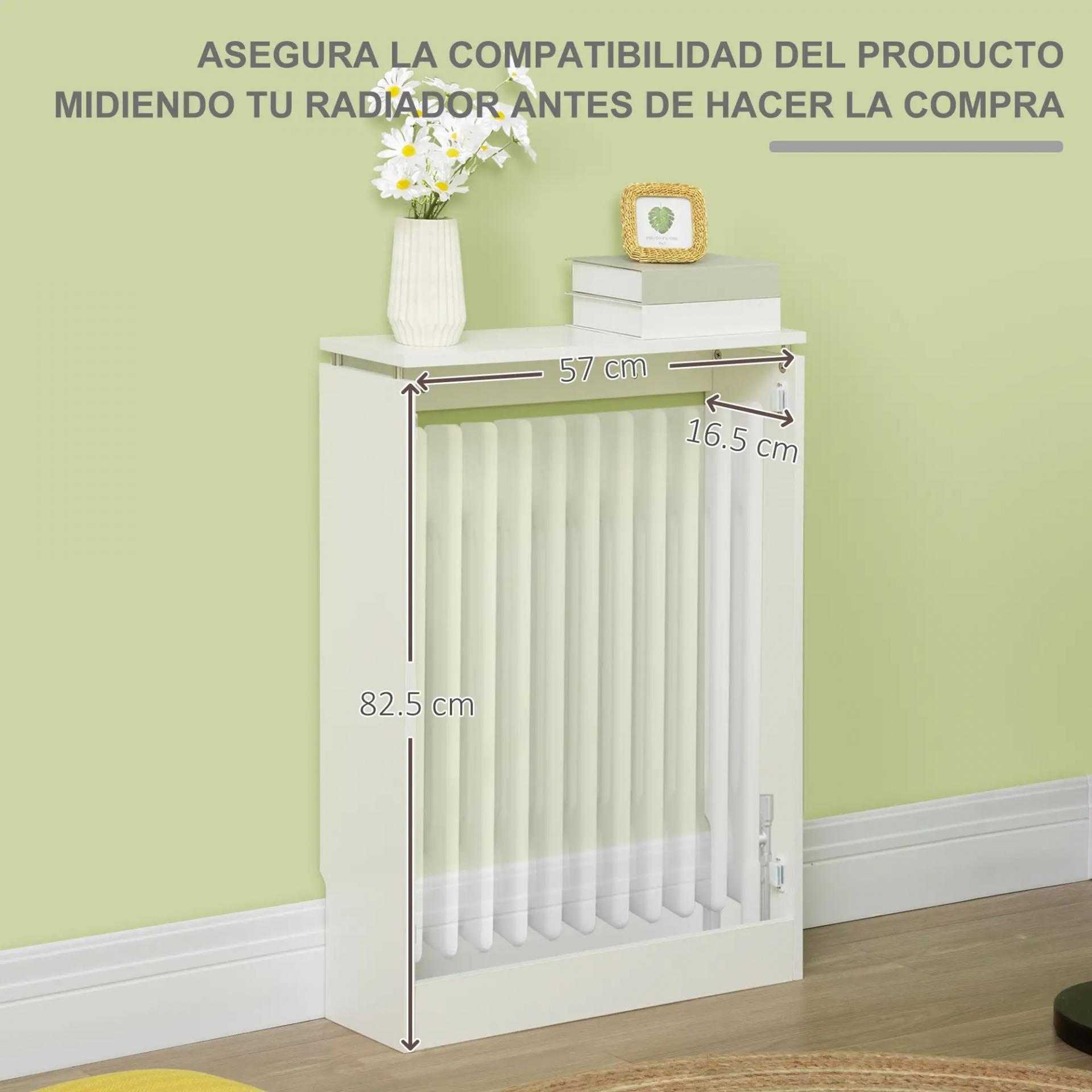 - ENCIMERA FUNCIONAL: La parte superior de este cubre radiador puede usarse a modo de estante de almacenaje o encimera para exhibir marcos de fotos, libros, adornos, etc. Hecho de MDF y acero, es un complemento resistente y realmente útil para aprovechar el espacio que ocupan tus radiadores