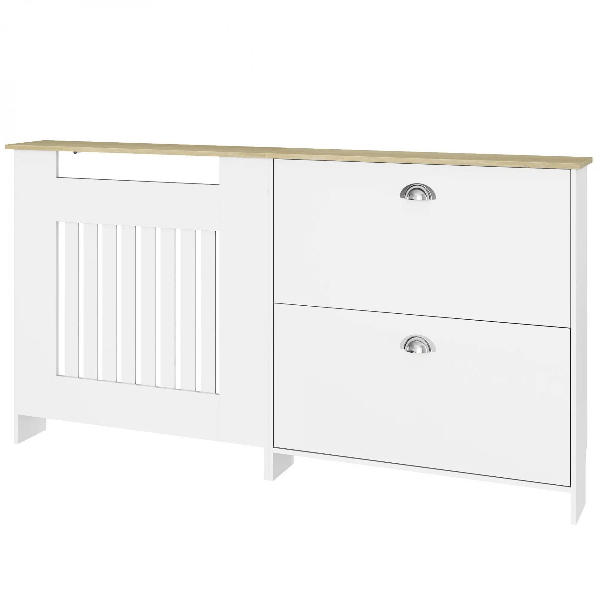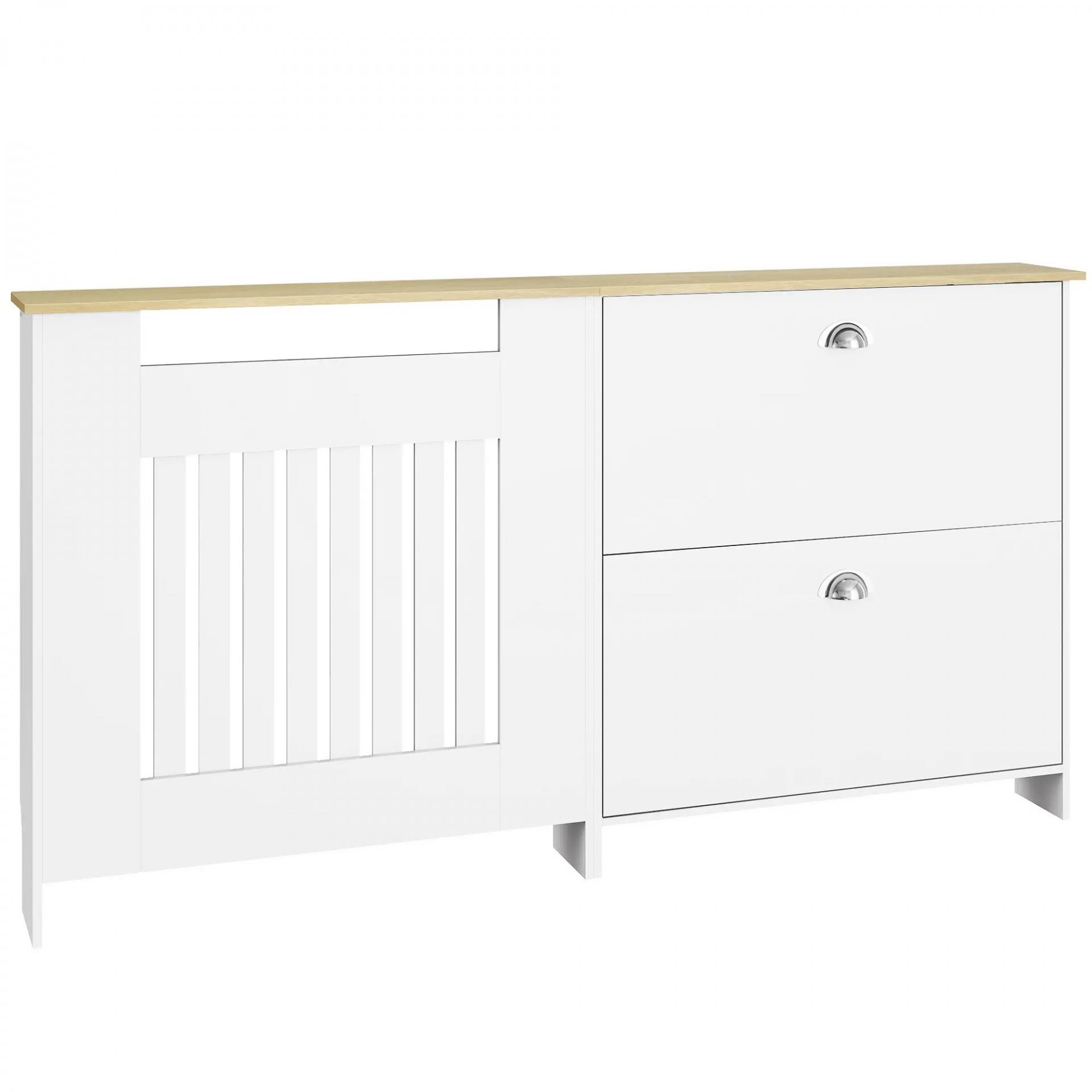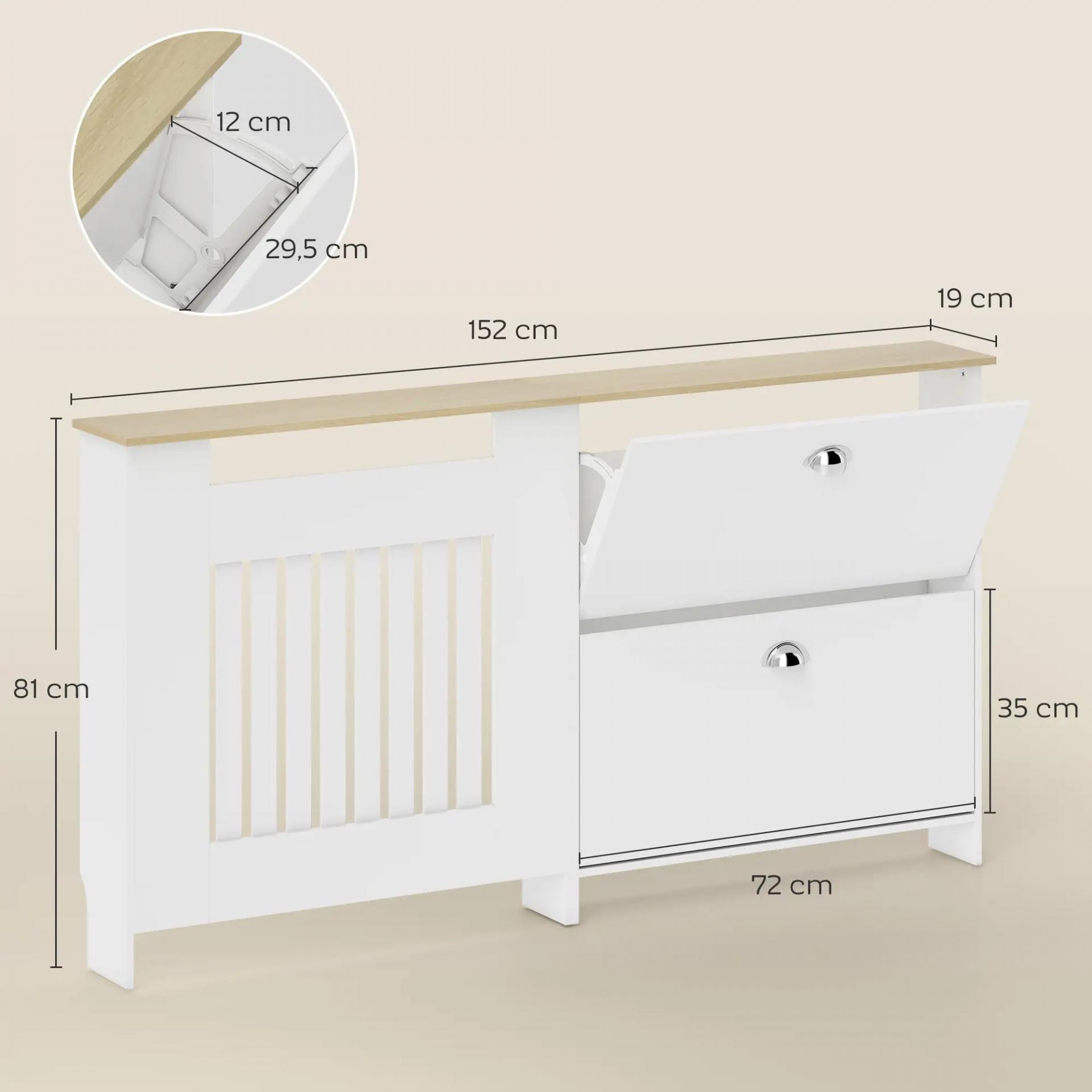 Cubre Radiadores con Zapatero Cubierta para Radiador con 2 Cajones Abatibles 152x19x81 cm Blanco