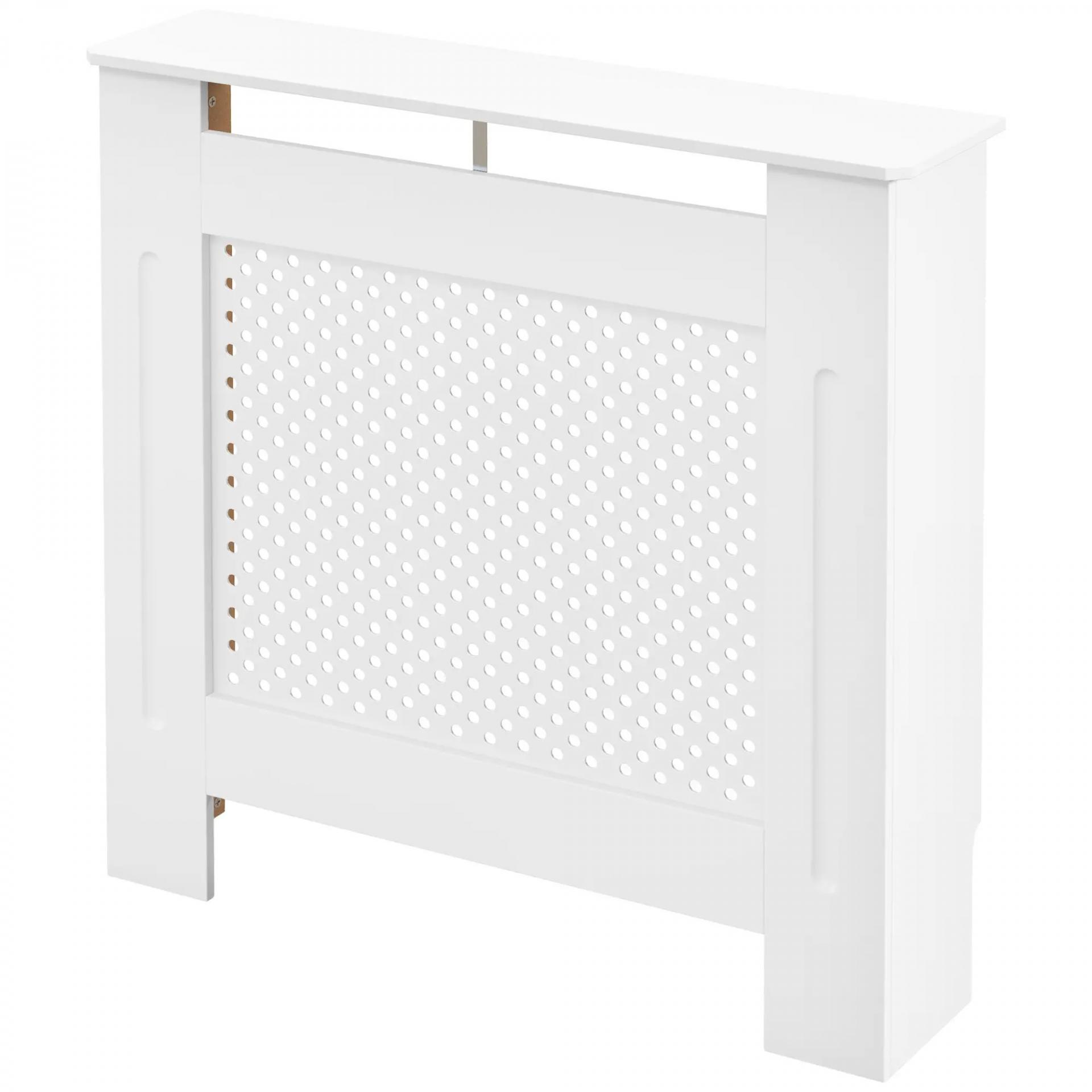 Cubre Radiadores, 78x19x82 cm, Cubierta para Radiador Moderna de MDF, con Estante Superior y Listones, para Salón, Dormitorio, Pasillo, Blanco
