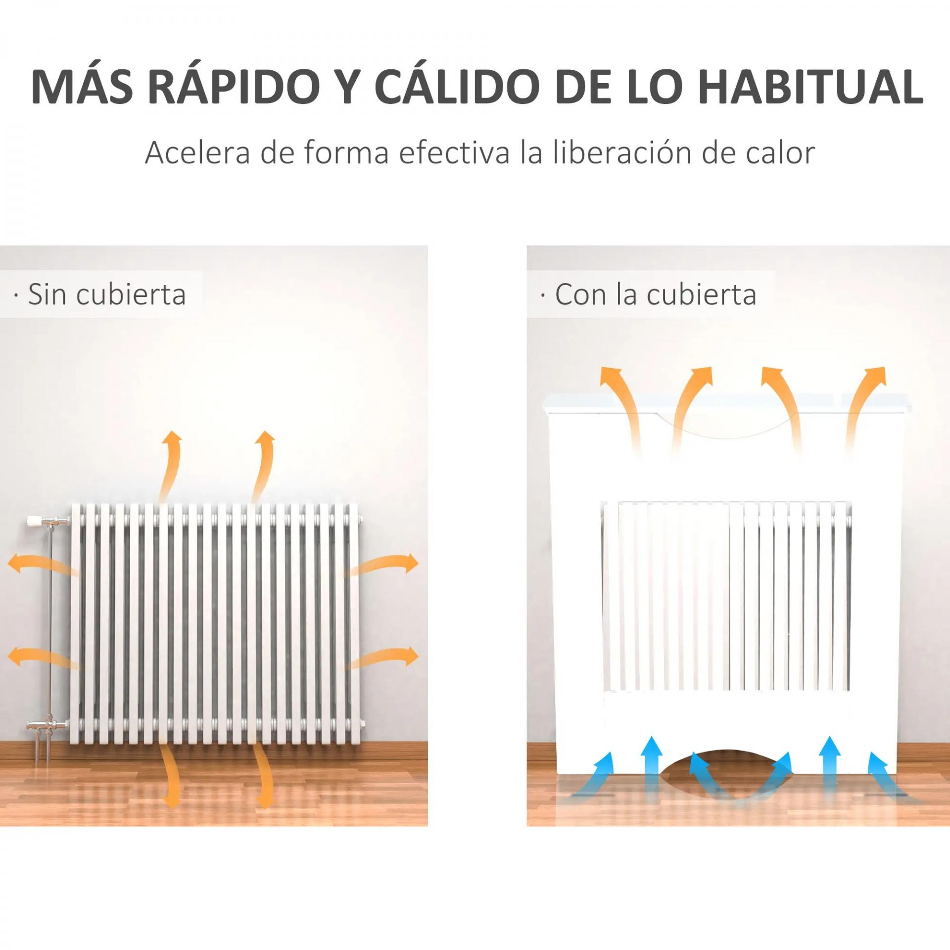 - ENCIMERA FUNCIONAL: La parte superior de este cubre radiador puede usarse a modo de estante de almacenaje o encimera para exhibir marcos de fotos, libros, adornos, etc. Hecho de MDF E1 de 12 mm, es un complemento resistente y realmente útil para aprovechar el espacio que ocupan tus radiadores