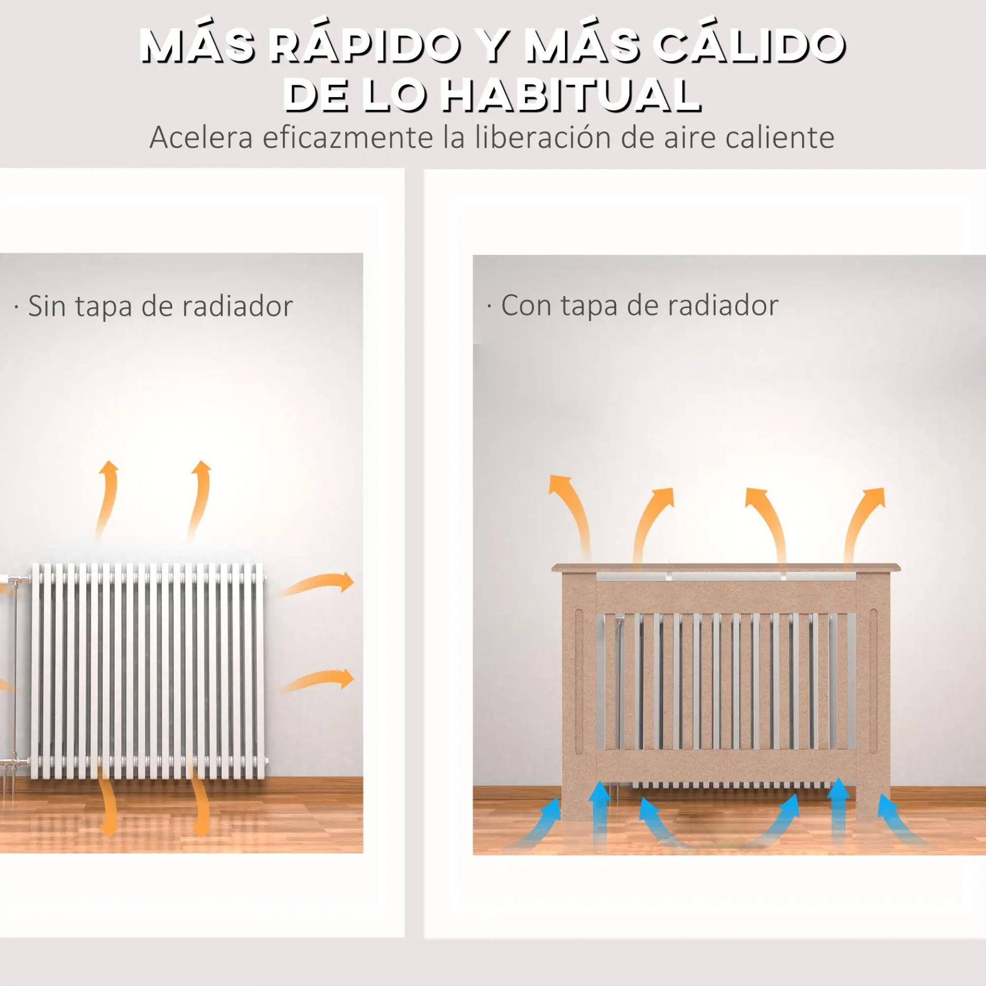 - BUENA VENTILACIÓN: El diseño de cubreradiador, rejado mediante listones de madera, ofrece una gran ventilación que permite que el calor fluya a través de la cubierta de manera eficiente para poder calentar igualmente el espacio