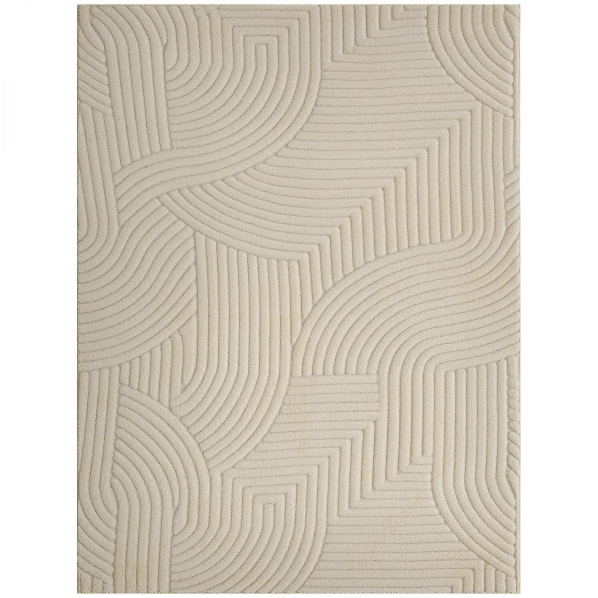 Alfombra Salón 160x120 cm Pelo Corto Estilo Moderno Base Antideslizante Tejida a Máquina Crema
