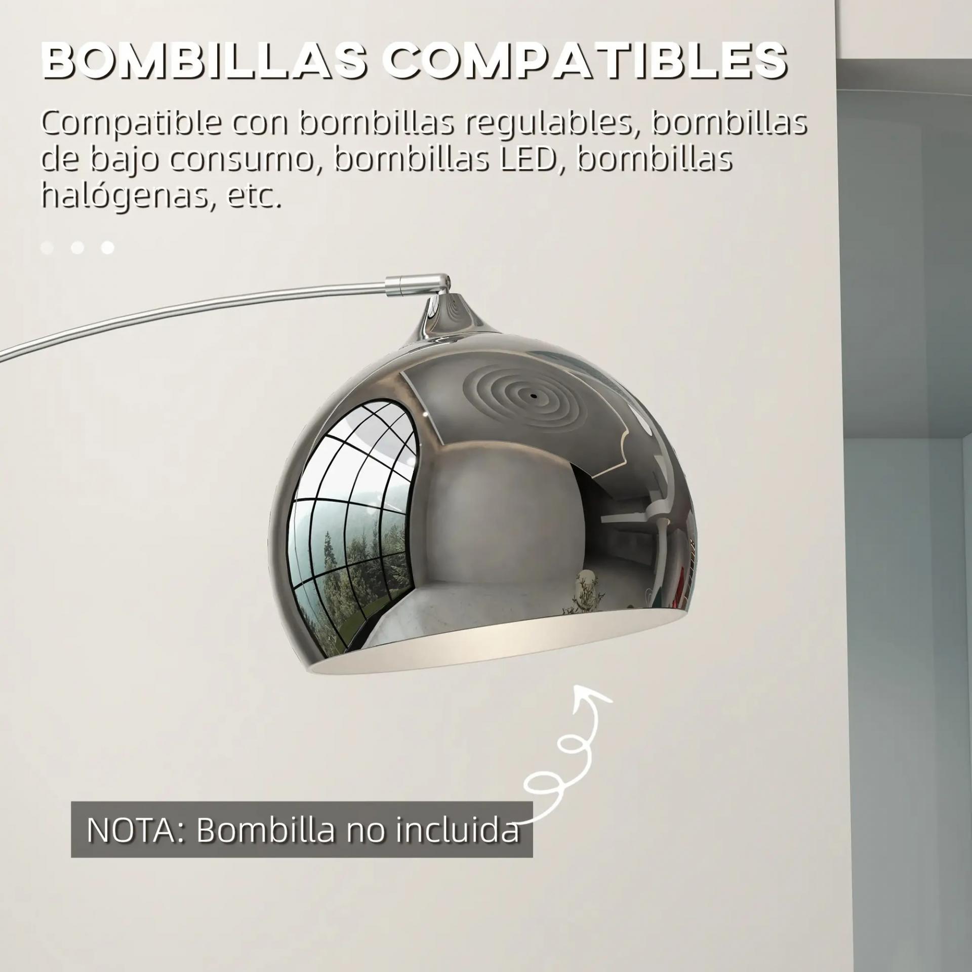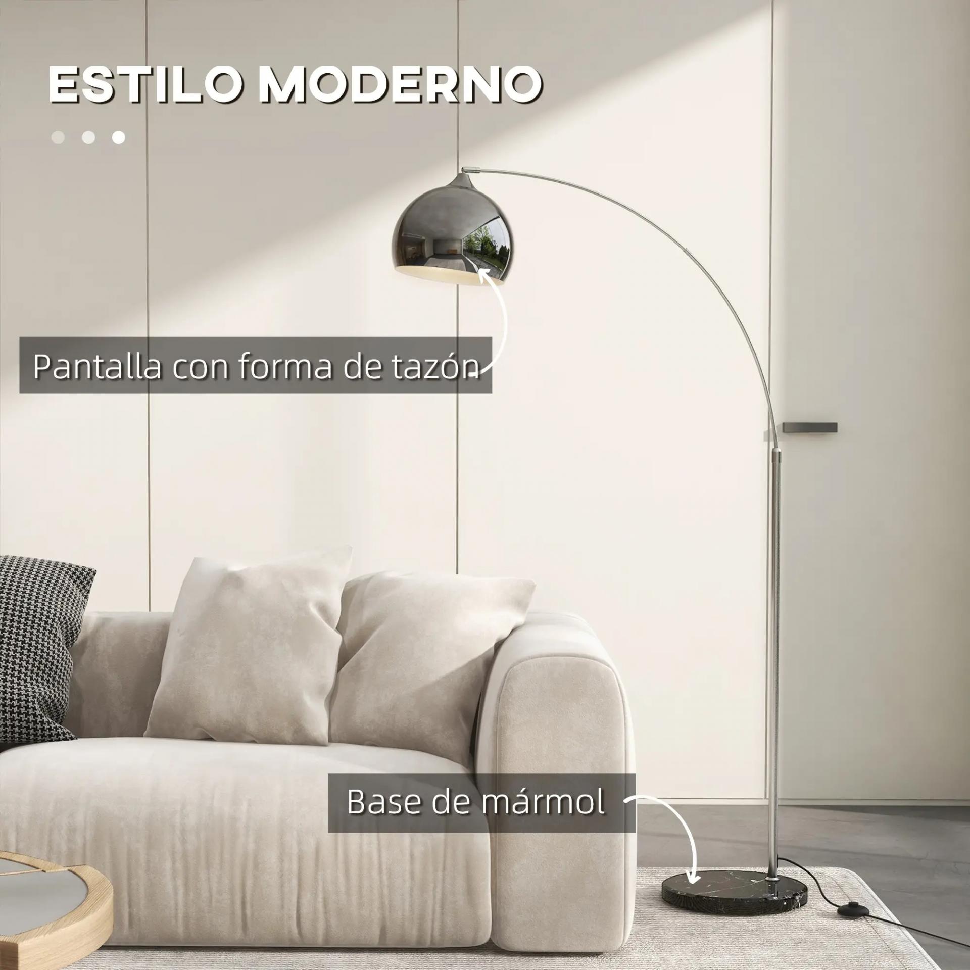 DISEÑO MODERNO: Con su forma curva, pantalla de lámpara en forma de cuenco plateada y base de mármol, esta lámpara de pie de salón destaca por su estilo. Ideal para cualquier habitación que necesite iluminación adicional