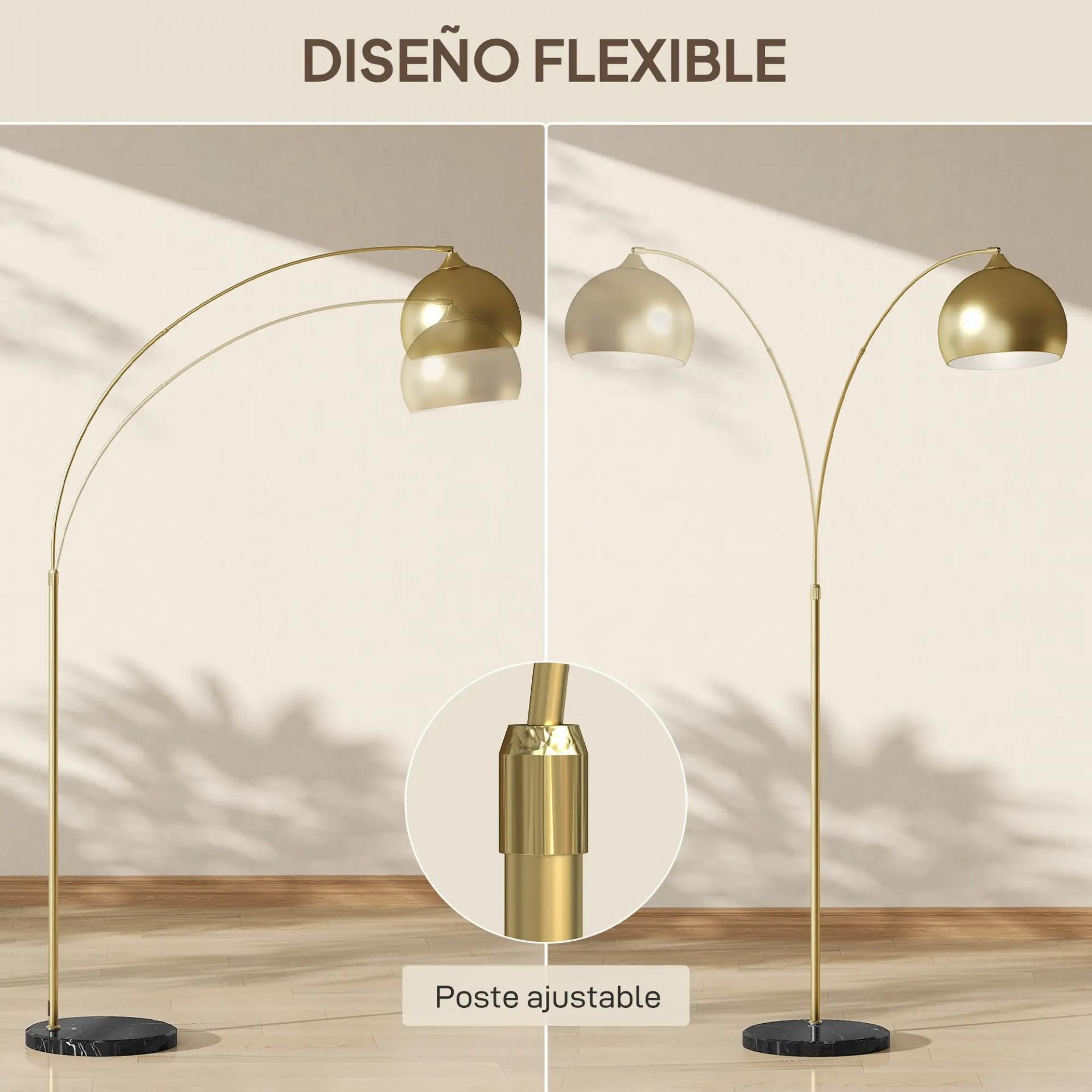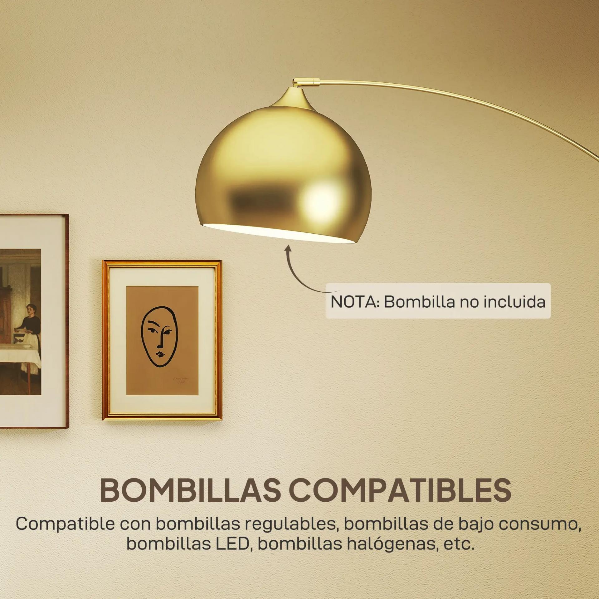 DISEÑO MODERNO: Con su forma curva, pantalla de lámpara en forma de cuenco dorada y base de mármol, esta lámpara de pie para salón destaca por su estilo. Ideal para cualquier habitación que necesite iluminación adicional