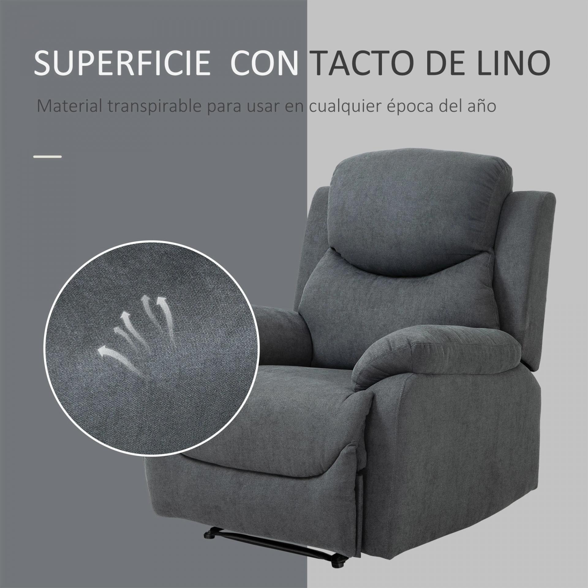 SILLÓN RELAX: se puede inclinar a un ángulo de 150° de forma manual muy fácilmente. Por su diseño en color gris y líneas clásicas podrás colocarlo en diferentes espacios de la casa, en el despacho o incluso en salas de espera.