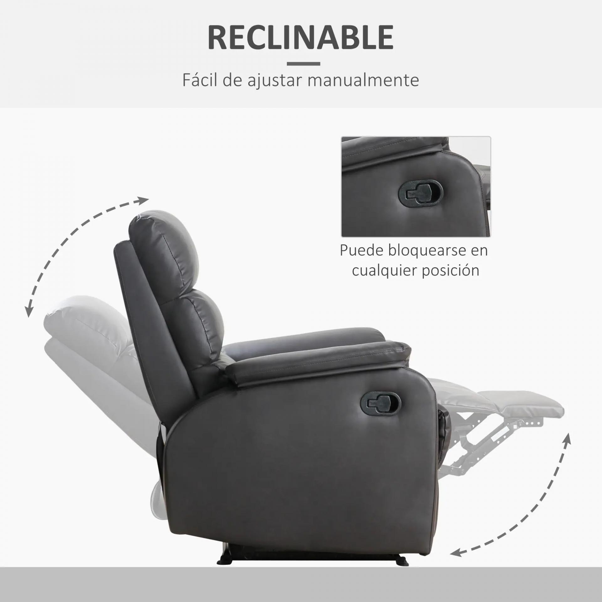 Sillón Relax Reclinable Manual Tapizado en PU con Reposapiés Retráctil Asiento y Respaldo Extra Acolchados para Salón Oficina Dormitorio 75x92x99 cm Marrón