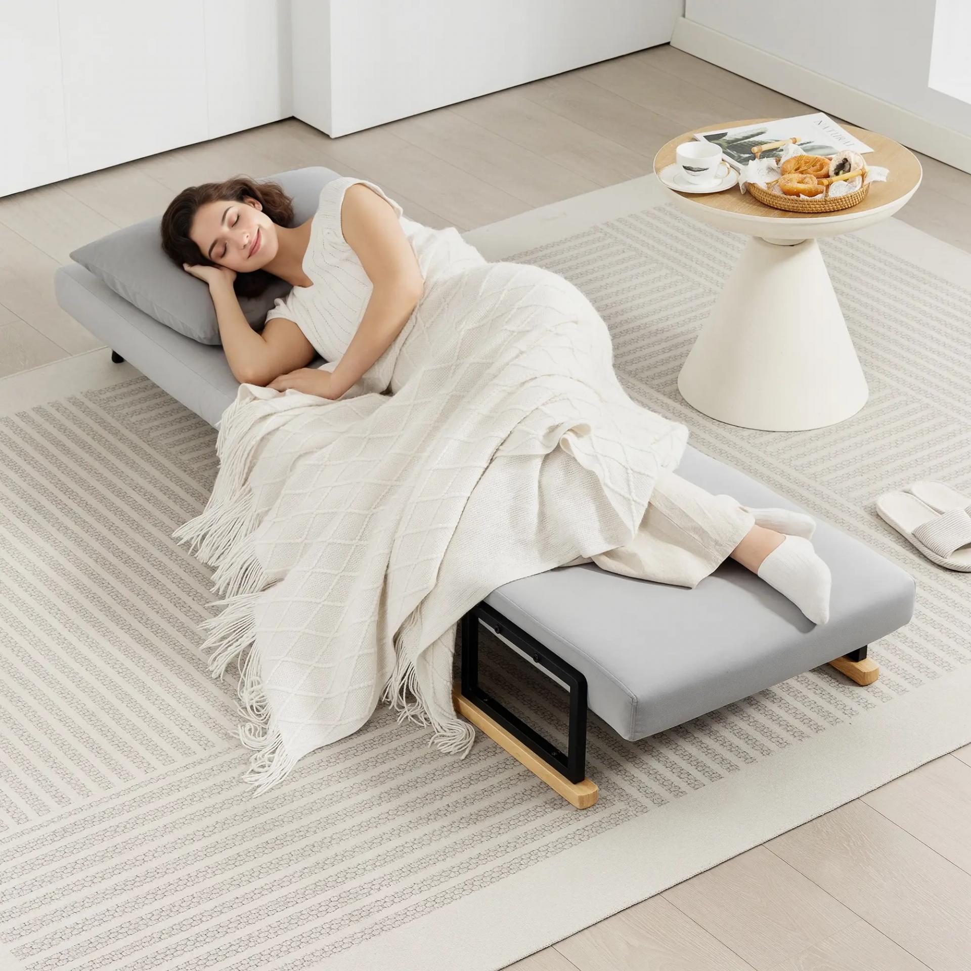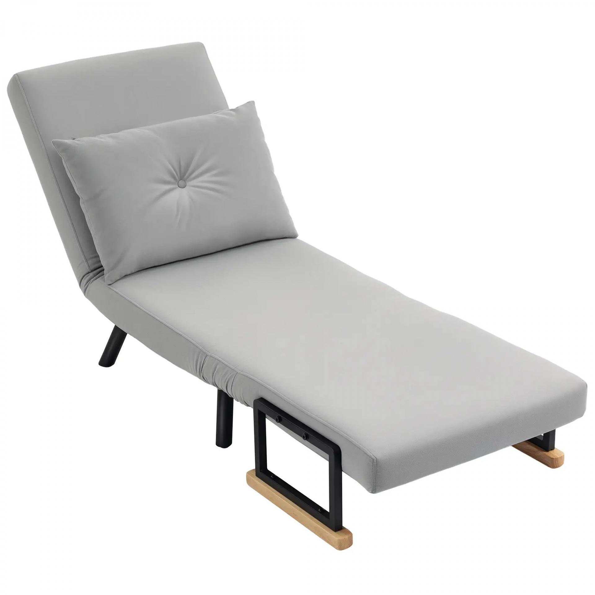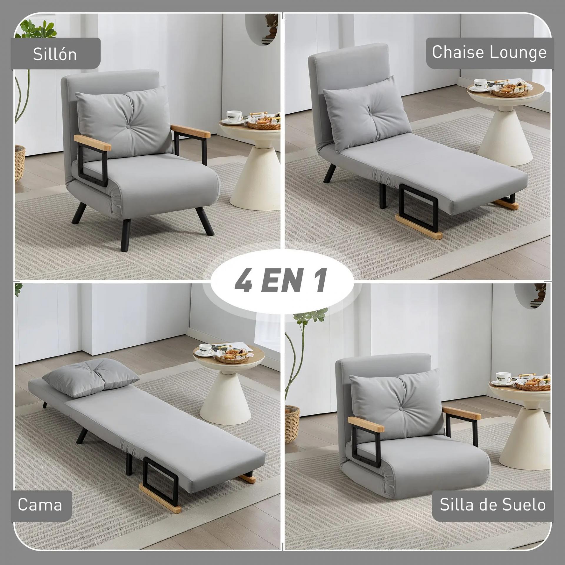 Sofá Cama Individual Plegable Sofá Cama Convertible 4 en 1 Respaldo Ajustable de 5 Niveles y Almohada 63x73x81 cm Gris
