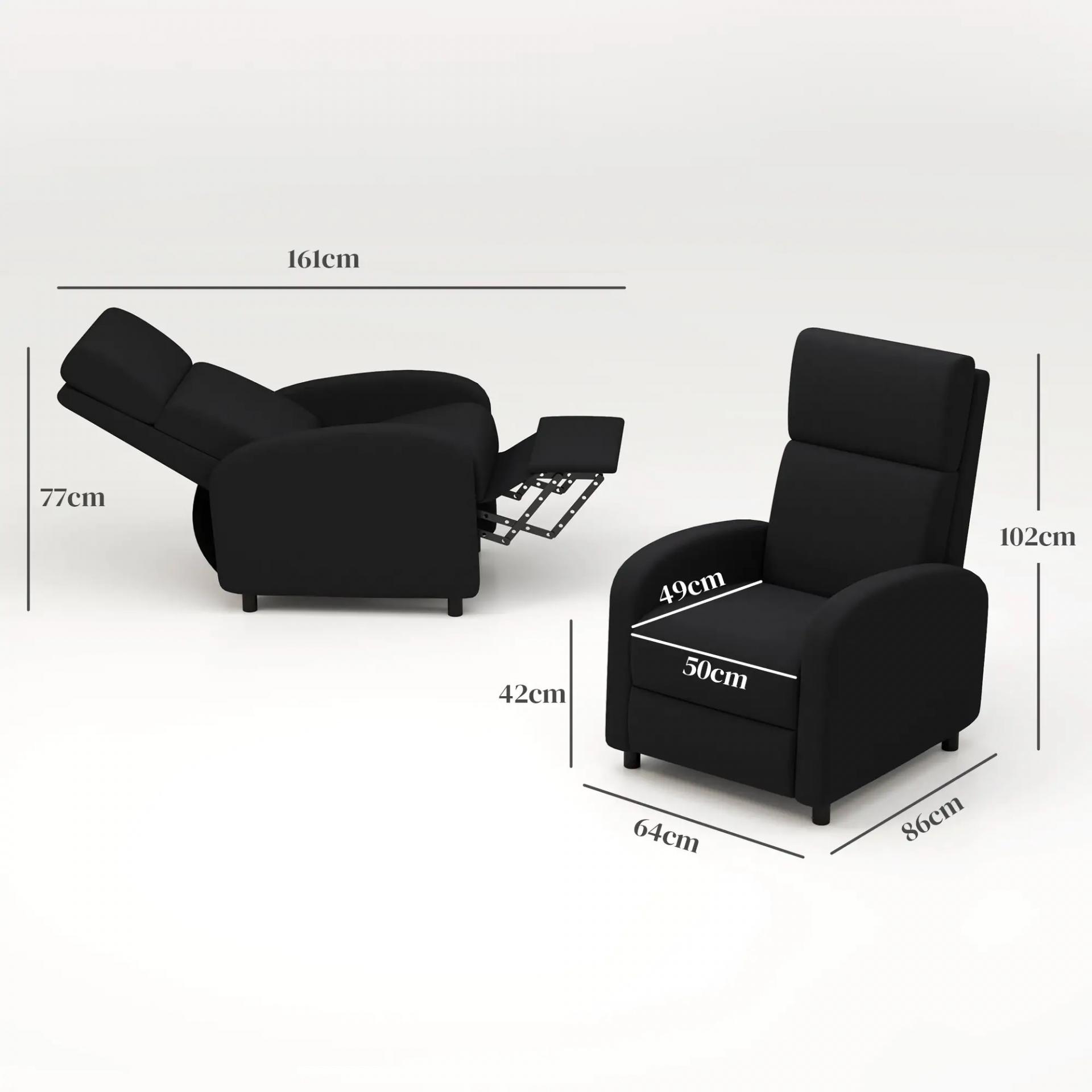 Sillón Relax Reclinable hasta 160° Sofá Reclinable Moderno con Reposapiés Soporta hasta 120 kg 64x86x102 cm Negro