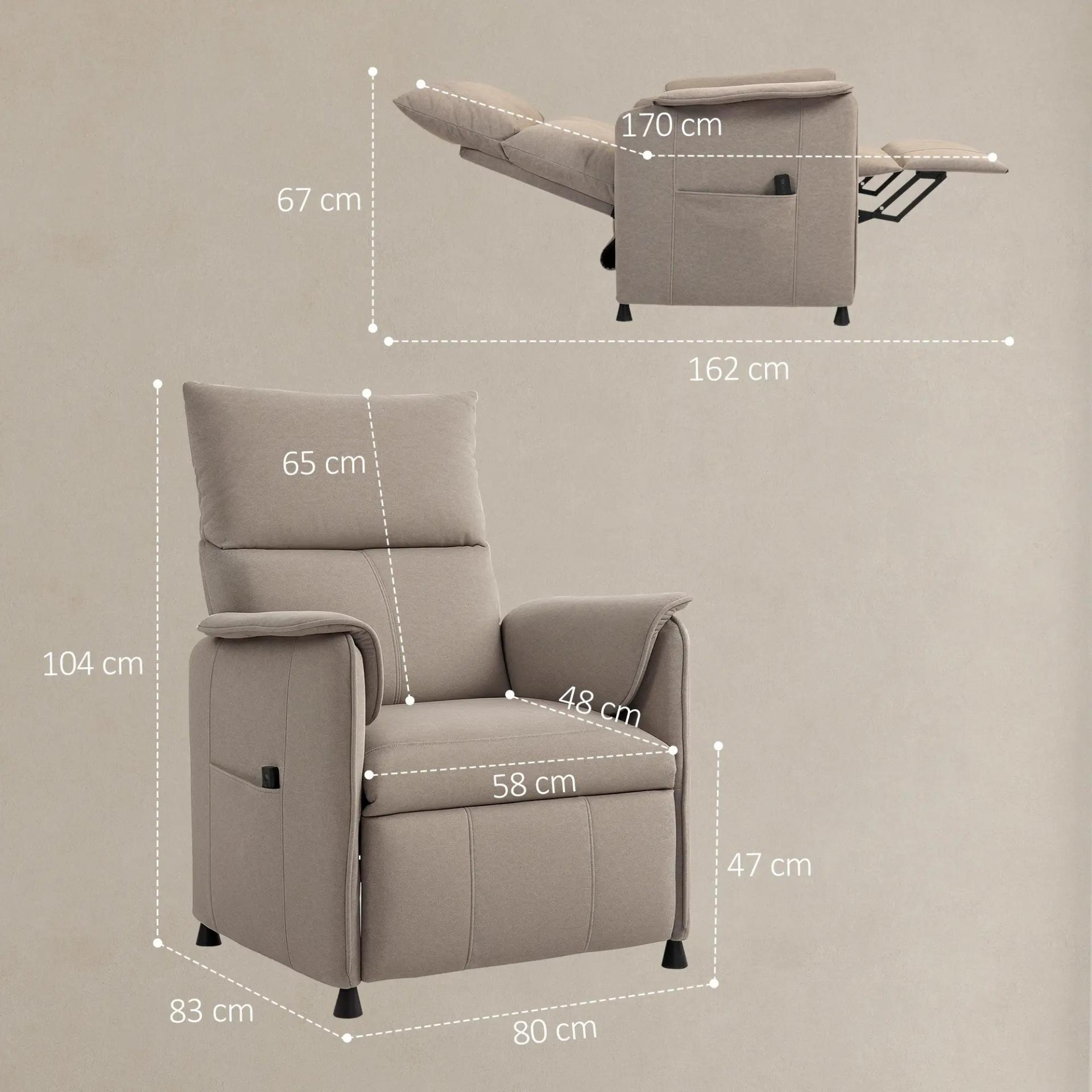 Sillón Reclinable con Motor sin Escobillas Reposapiés Tapizado Resistente y Bolsillos Laterales 80x83x104 cm Marrón