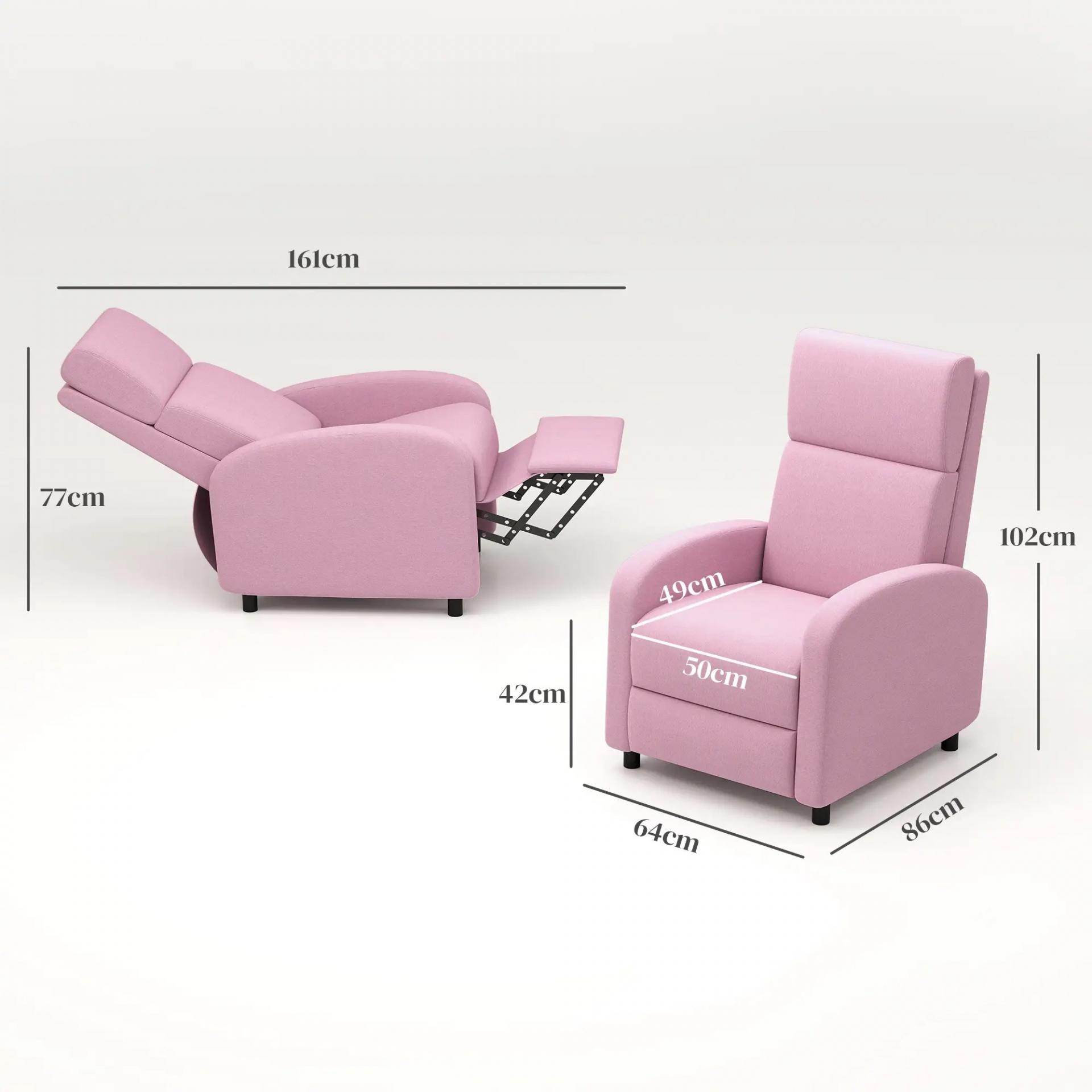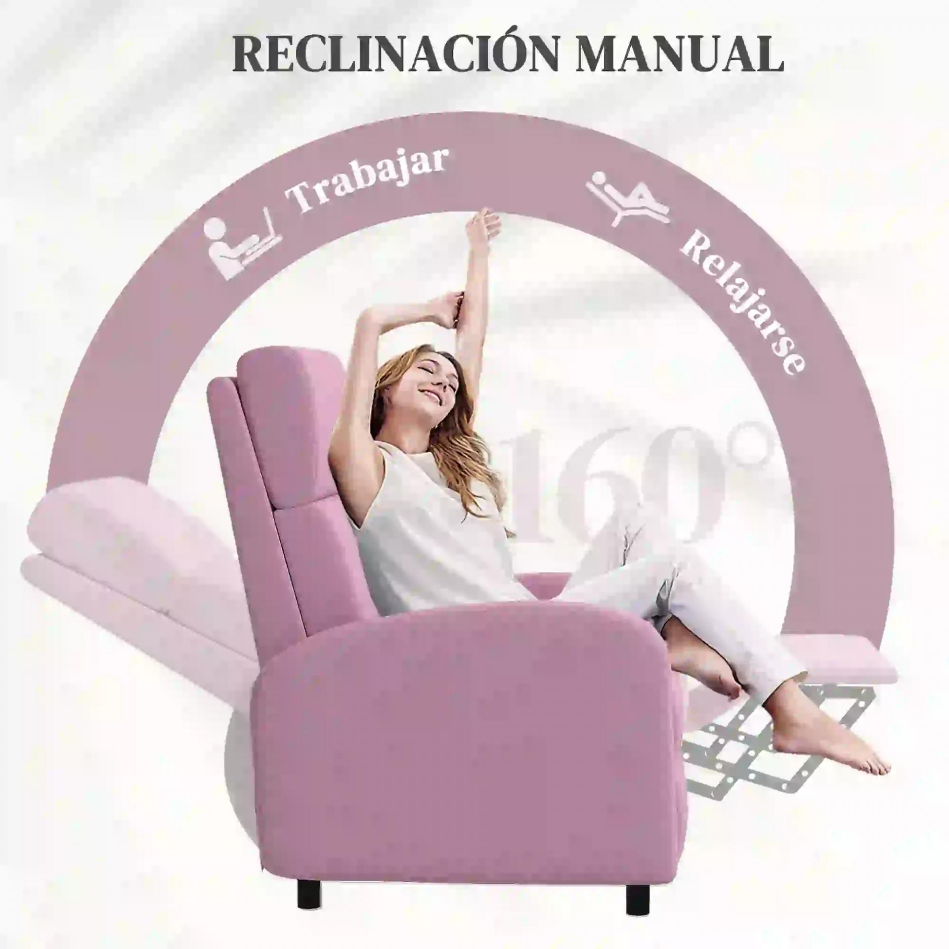 Sillón Relax Reclinable hasta 160° Sofá Reclinable Moderno con Reposapiés Soporta hasta 120 kg 64x86x102 cm Rosa
