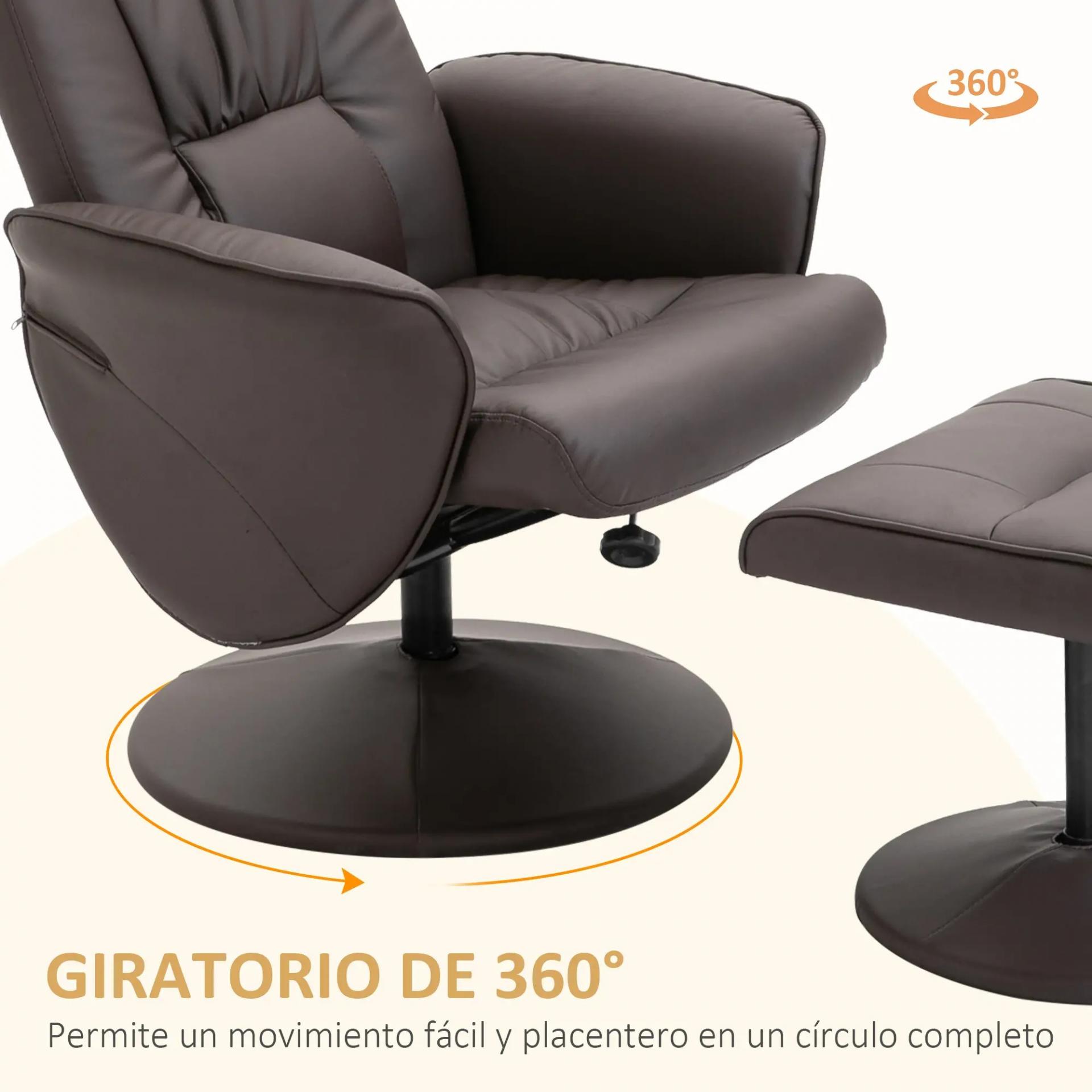 - GIRATORIO 360°: Este asiento puede girar 360°, lo que permite un movimiento circular completo. Tapizado en piel sintética, le da un toque elegante y facilita su limpieza