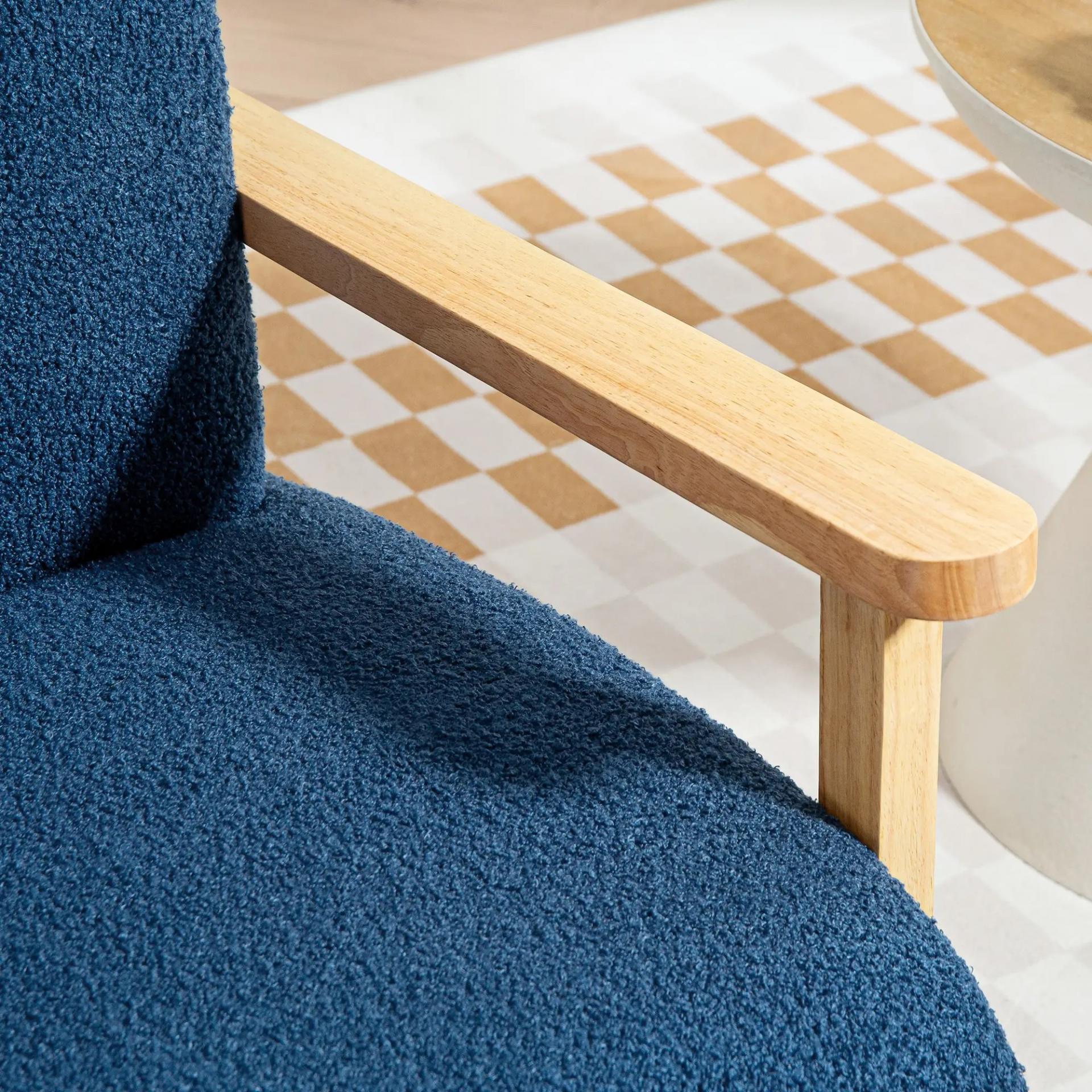 Sillón Nórdico de Borreguito Acolchado Grueso y Patas de Madera Asiento Amplio para Salón Dormitorio 74,5x76x78 cm Azul