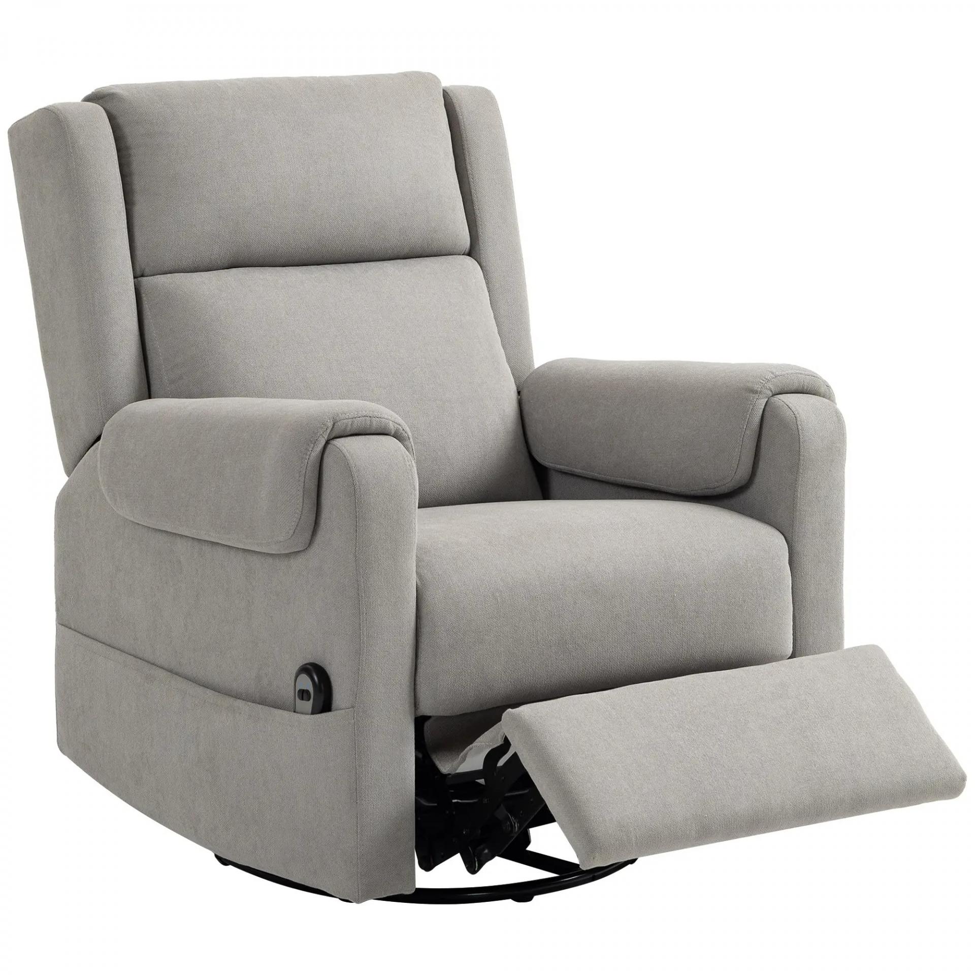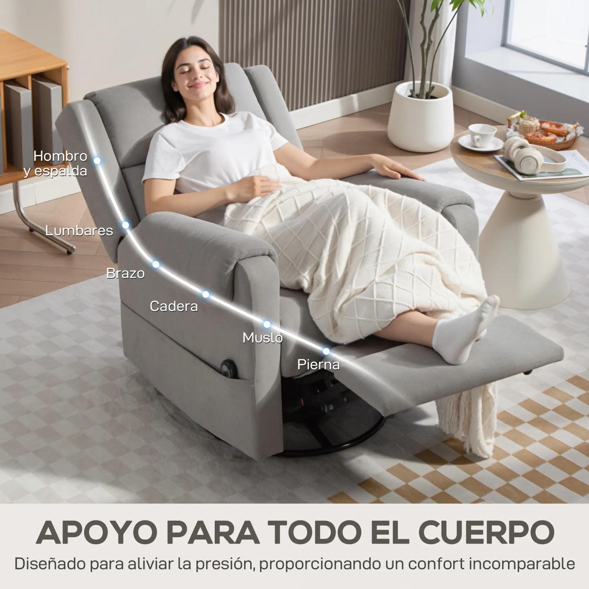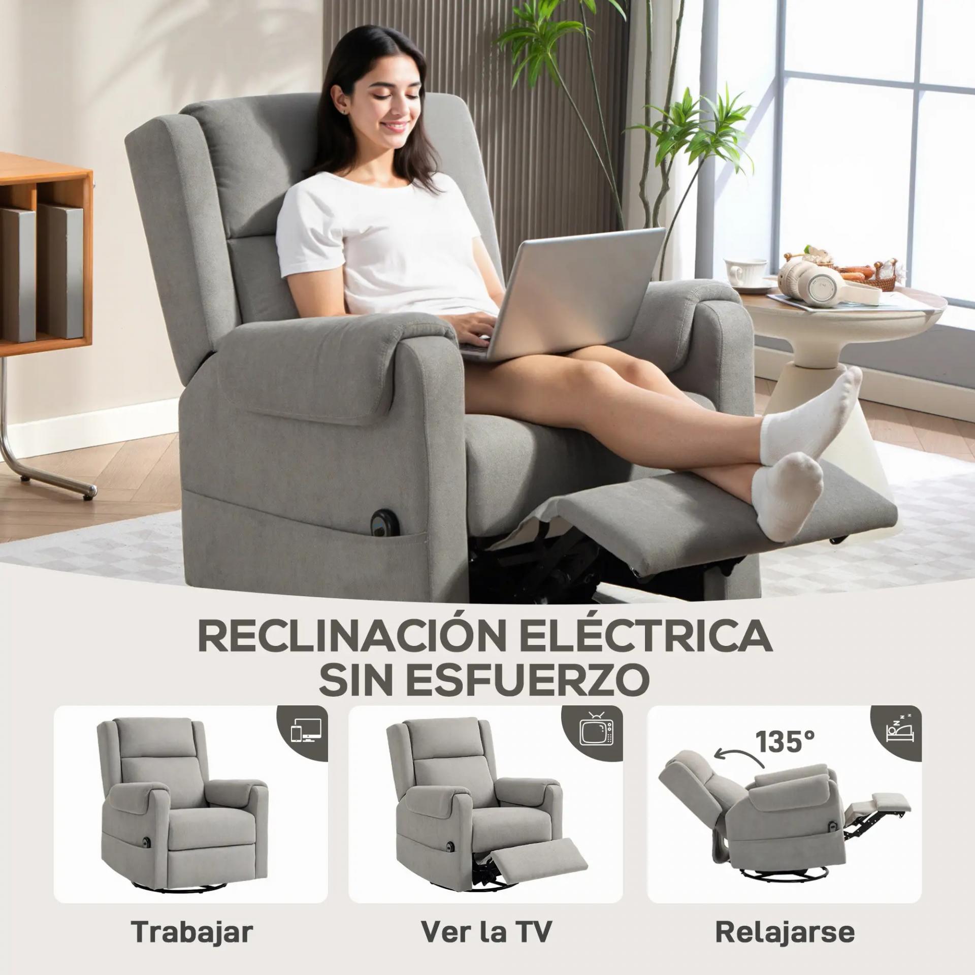 Sillón Relax Reclinable Eléctrico Giratorio y Basculante con Reposapiés Ajustable Mando a Distancia Gris Claro