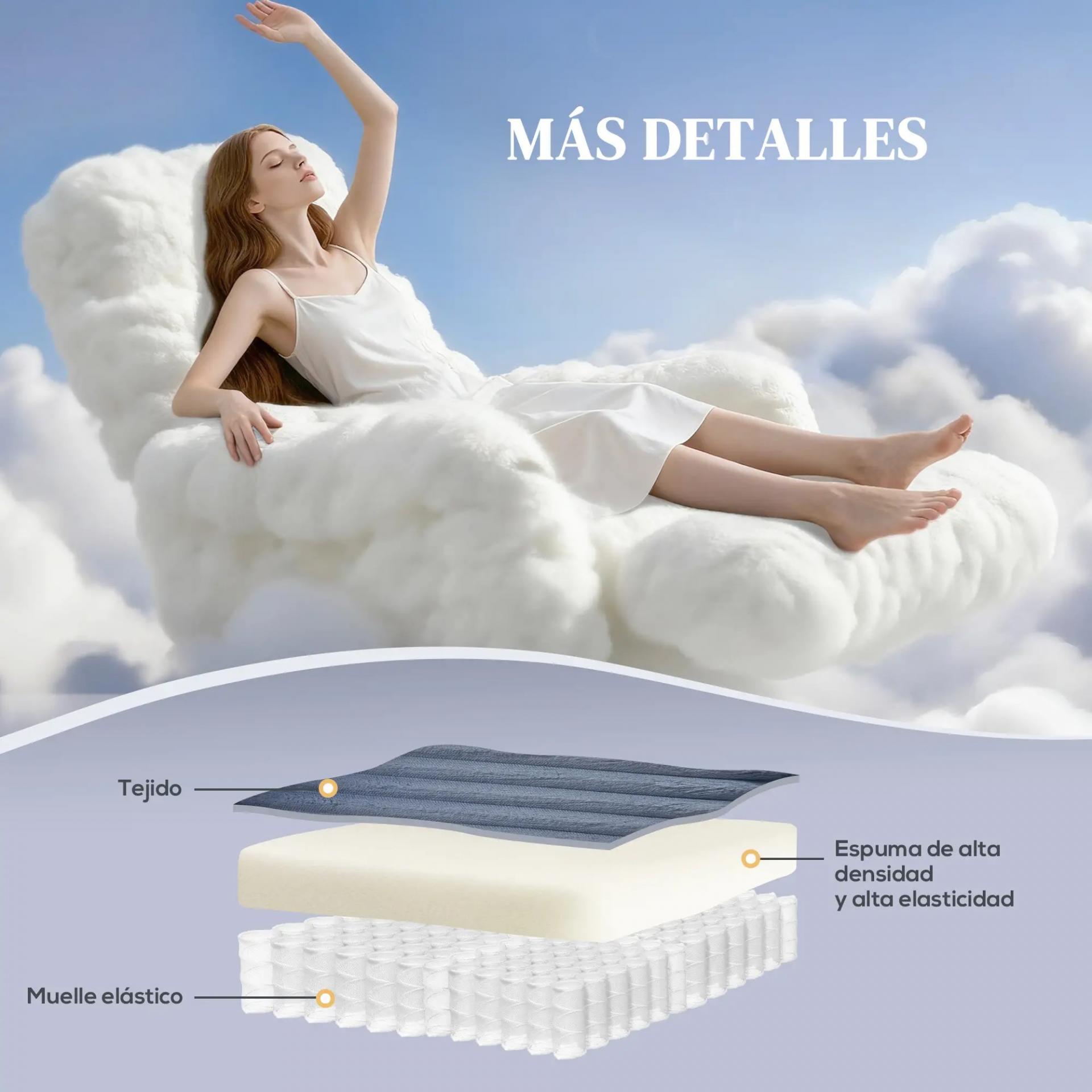 - MÁXIMO CONFORT: Este sillón relax combina muelles ensacados y espuma de alta densidad para ofrecer un soporte firme y envolvente. Su respaldo de 25 cm y tejido suave brindan comodidad, alivian la presión y permiten disfrutar de un descanso prolongado