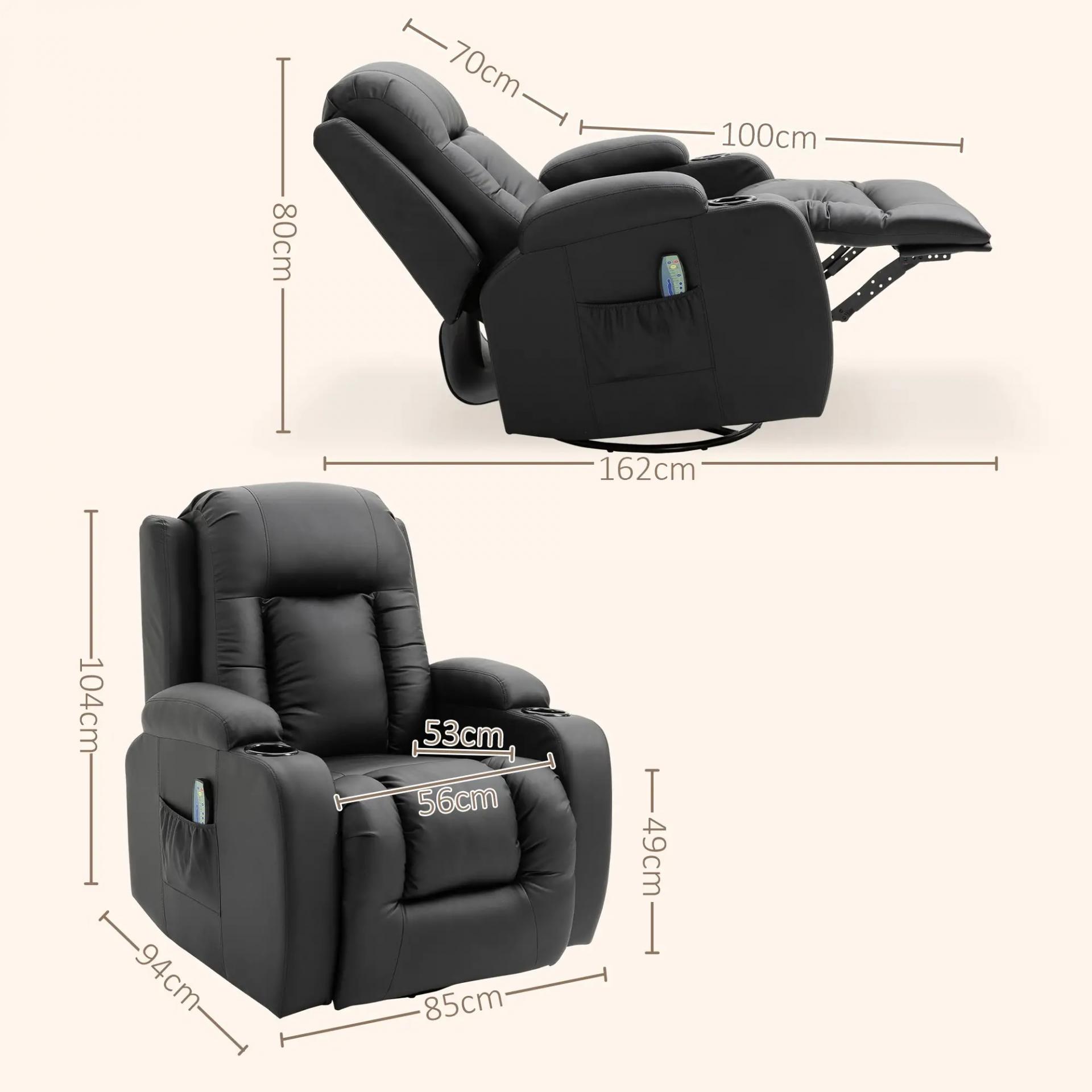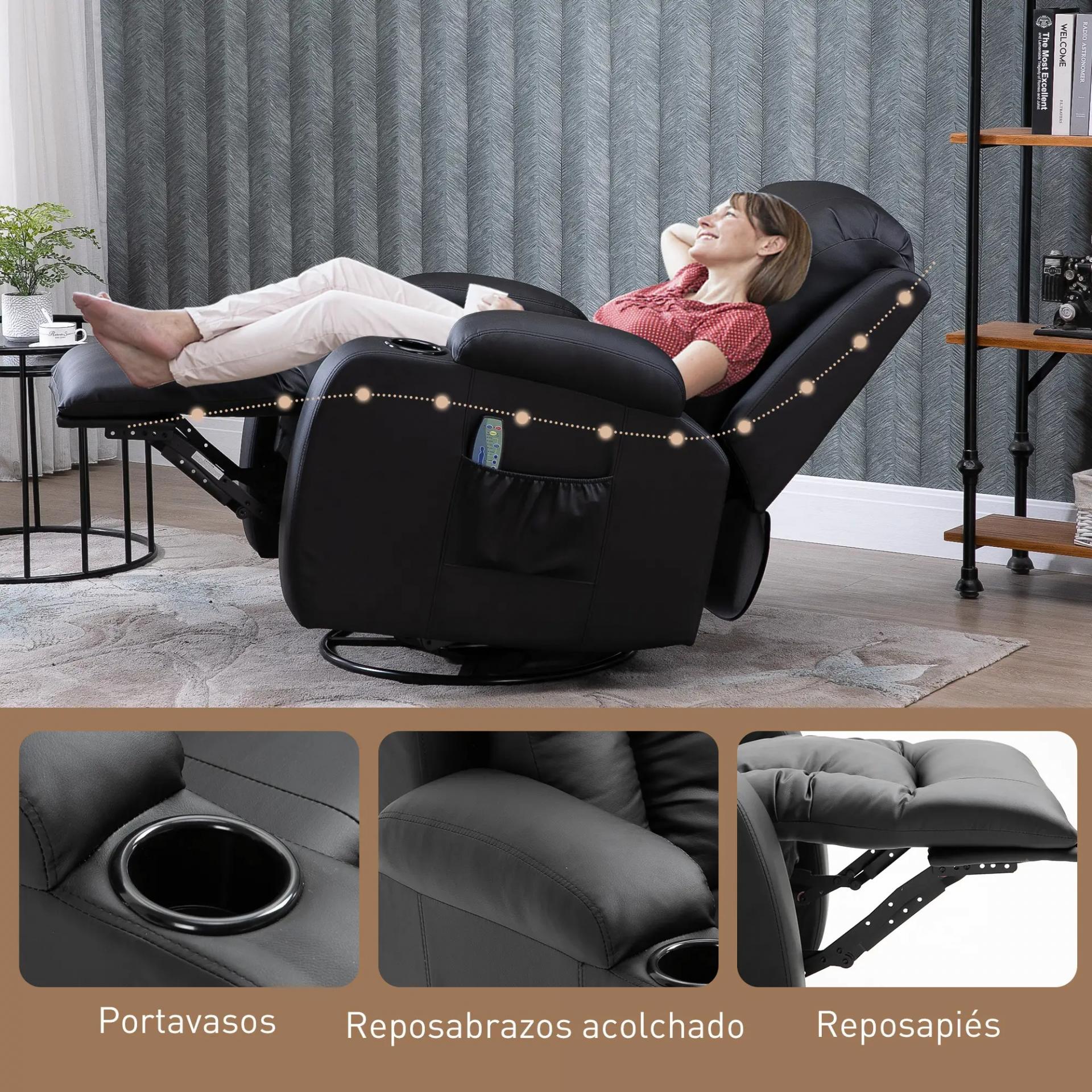 Sillón de Masaje Reclinable con 8 Puntos de Masaje Función de Calefacción Giratorio Mando a Distancia 85x94x104 cm Negro