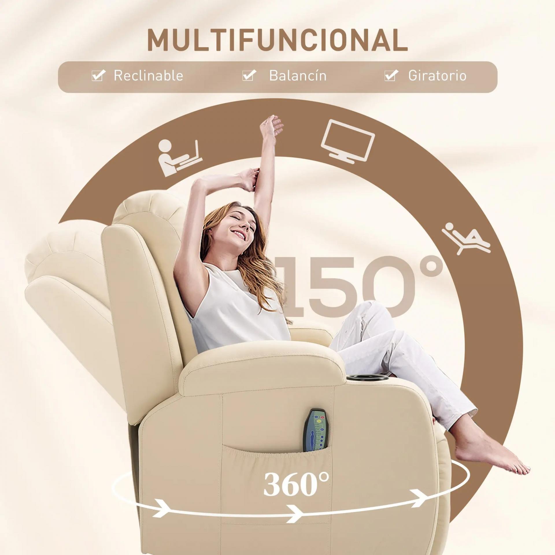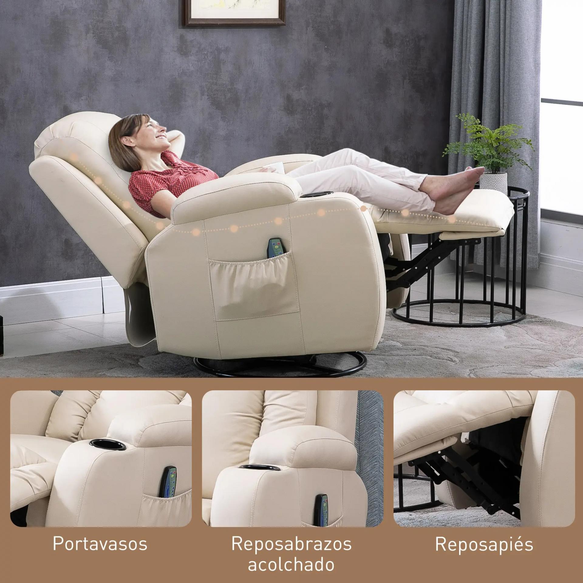 Sillón de Masaje Reclinable Sillón Relax con 8 Puntos de Masaje Vibrante Función de Calefacción 85x94x104 cm Crema