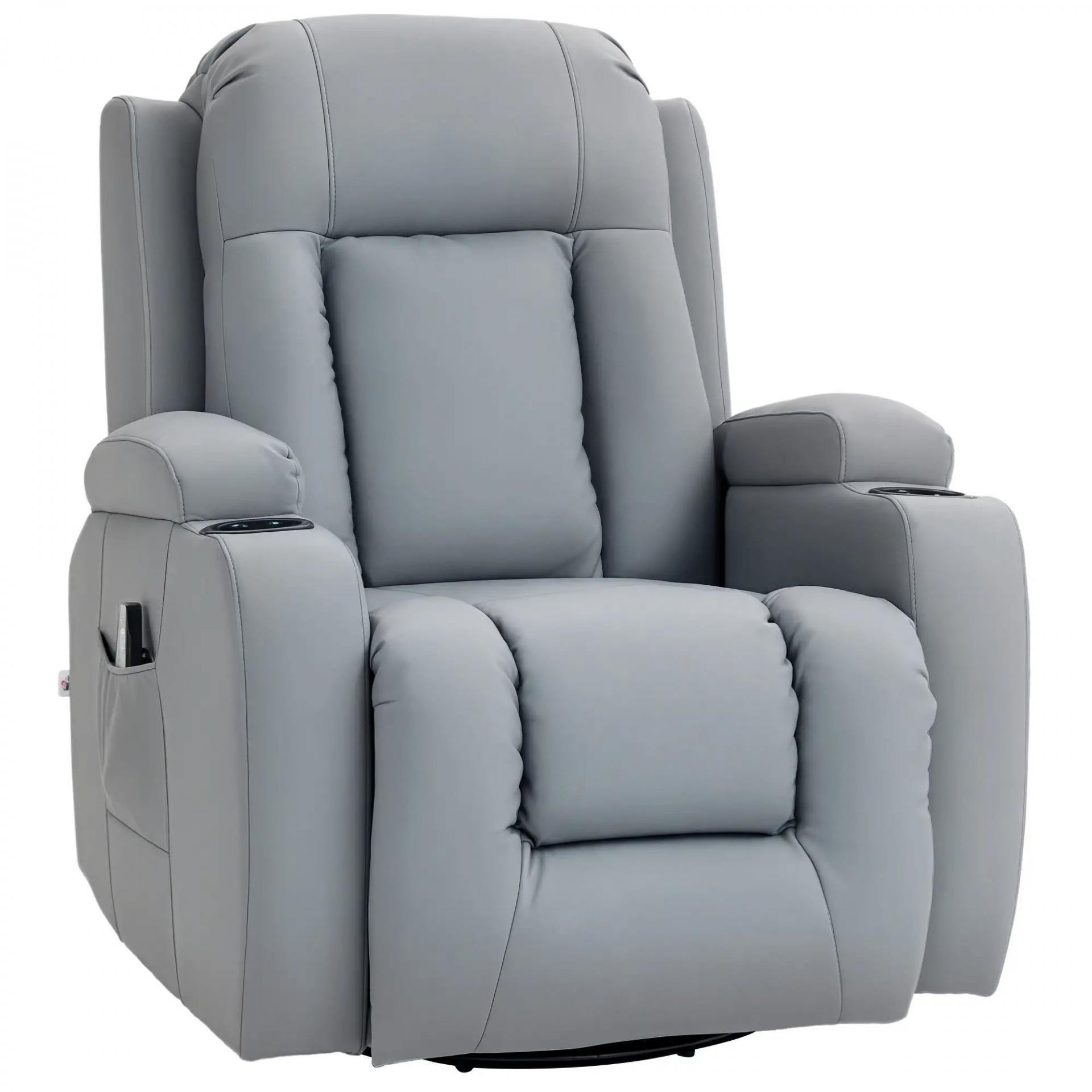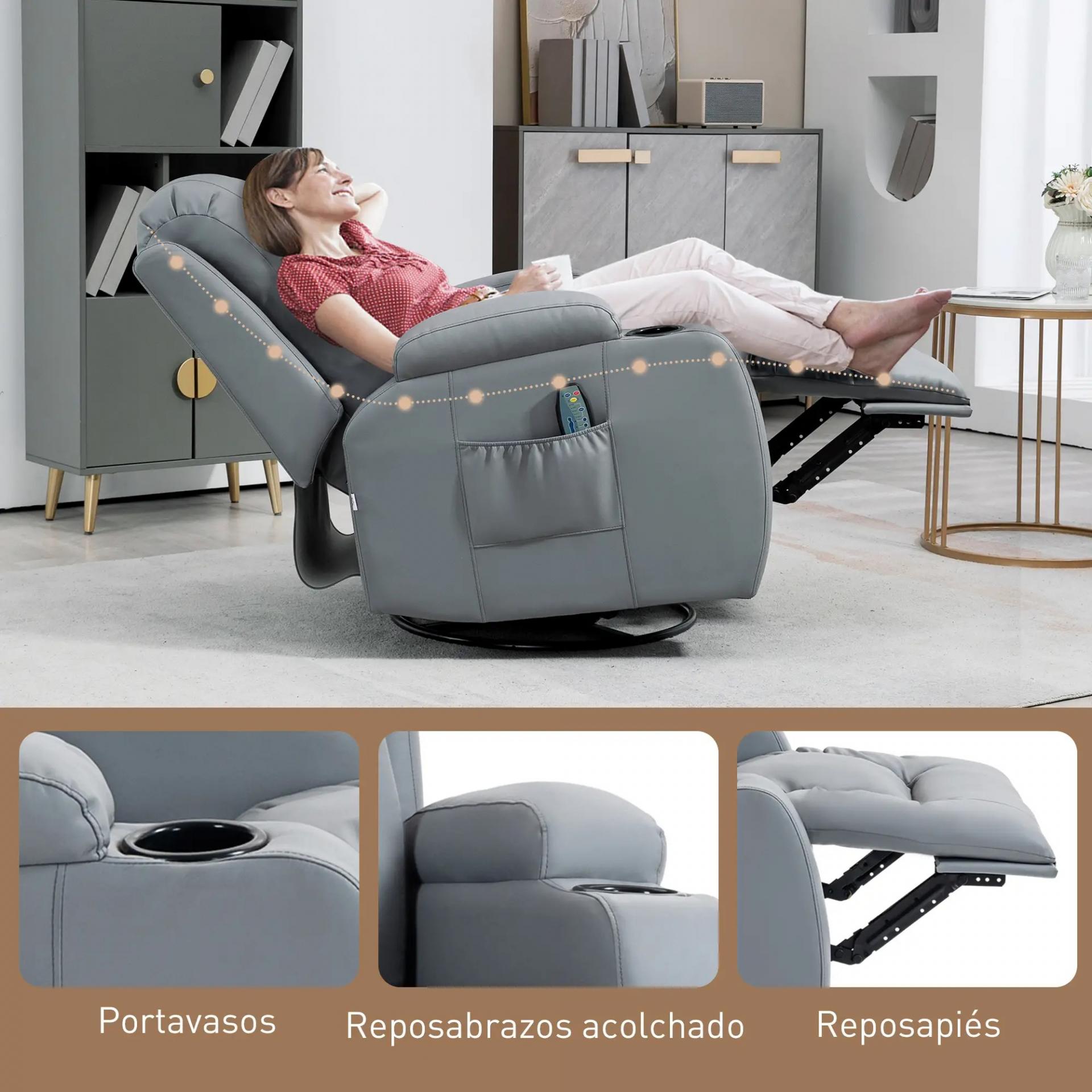 Sillón de Masaje Reclinable con 8 Puntos de Masaje Función de Calefacción Giratorio Mando a Distancia 85x94x104 cm Gris