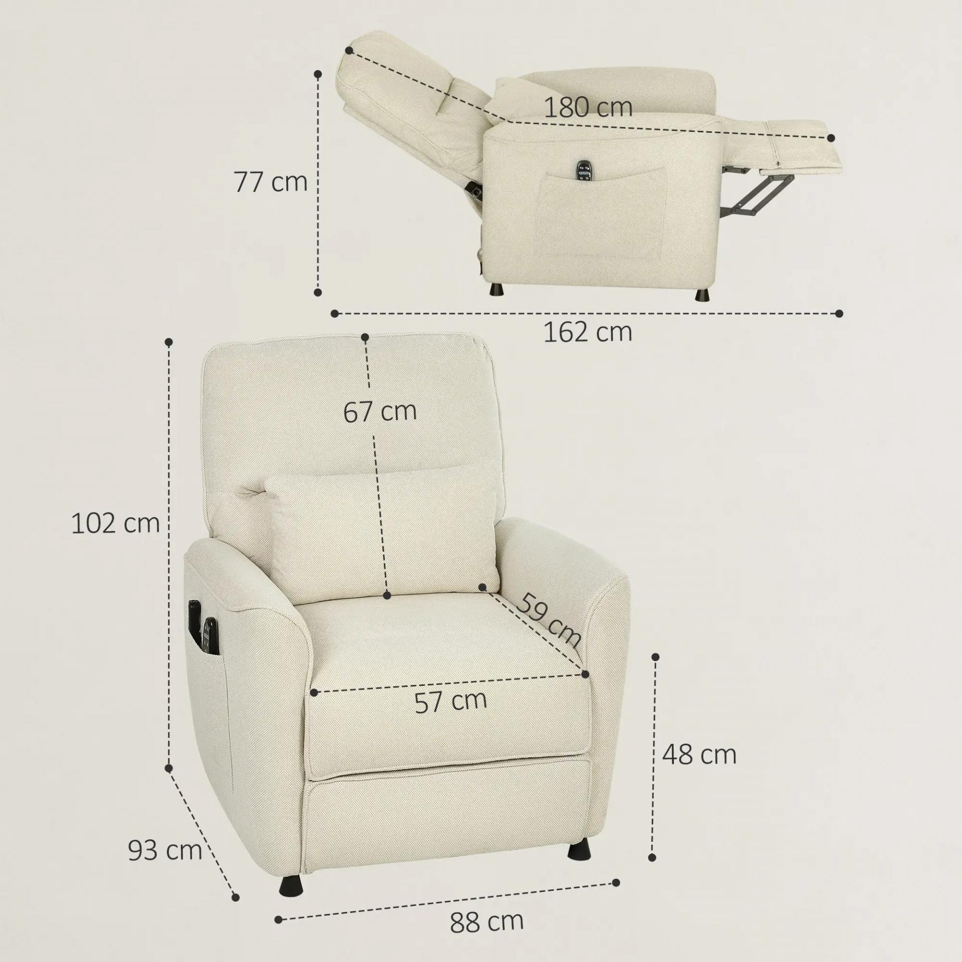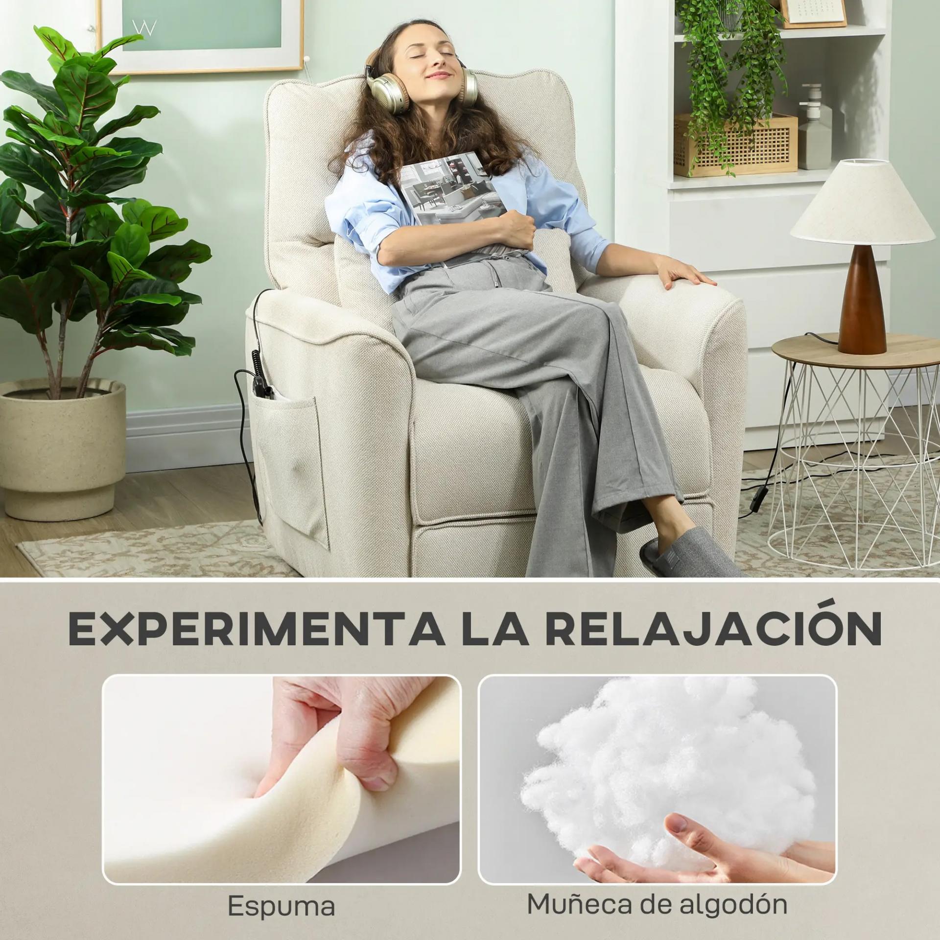 Sillón Relax Reclinable Eléctrico con Calor Lumbar Masaje Vibración Motor Silencioso Función de Memoria Crema