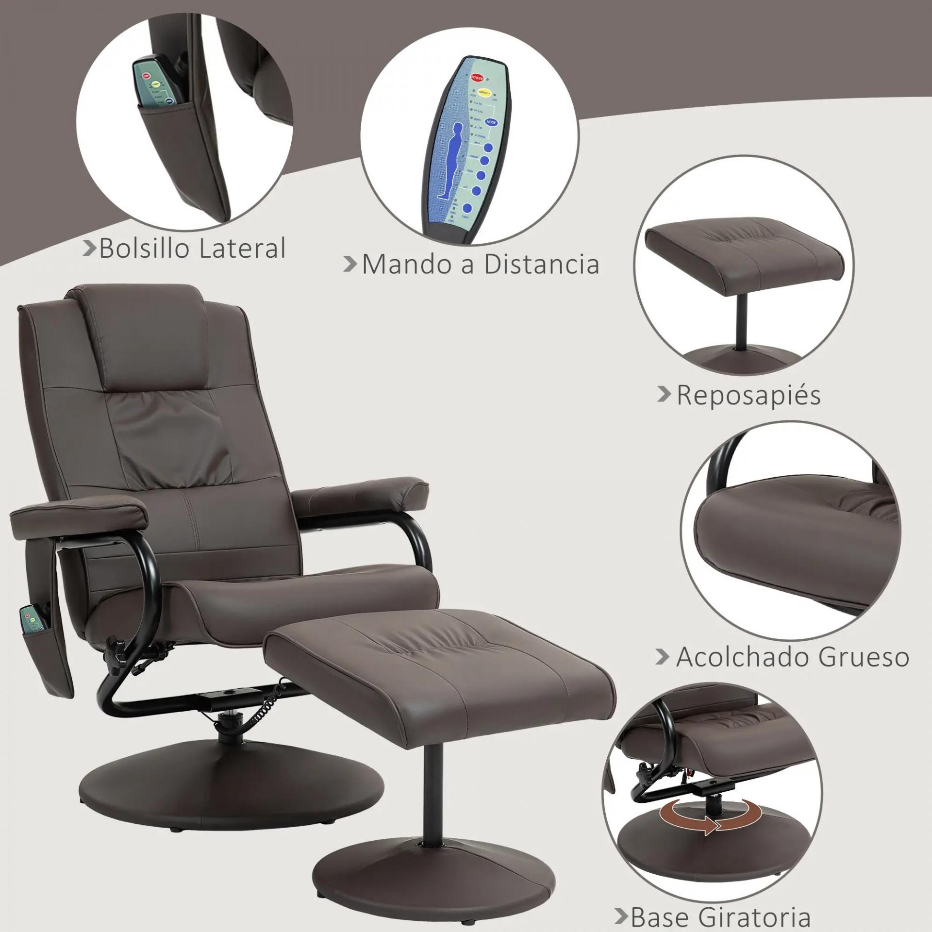 Sillón Relax Reclinable con Reposapiés con 10 Puntos de Masaje con Mando a Distancia para Salón Oficina Marrón