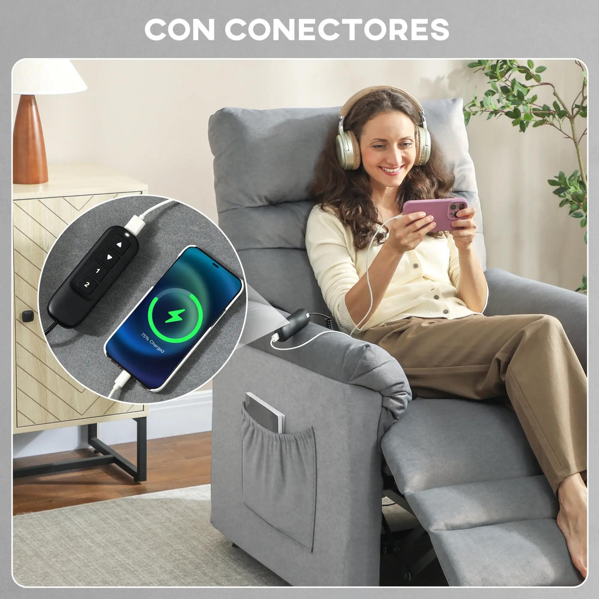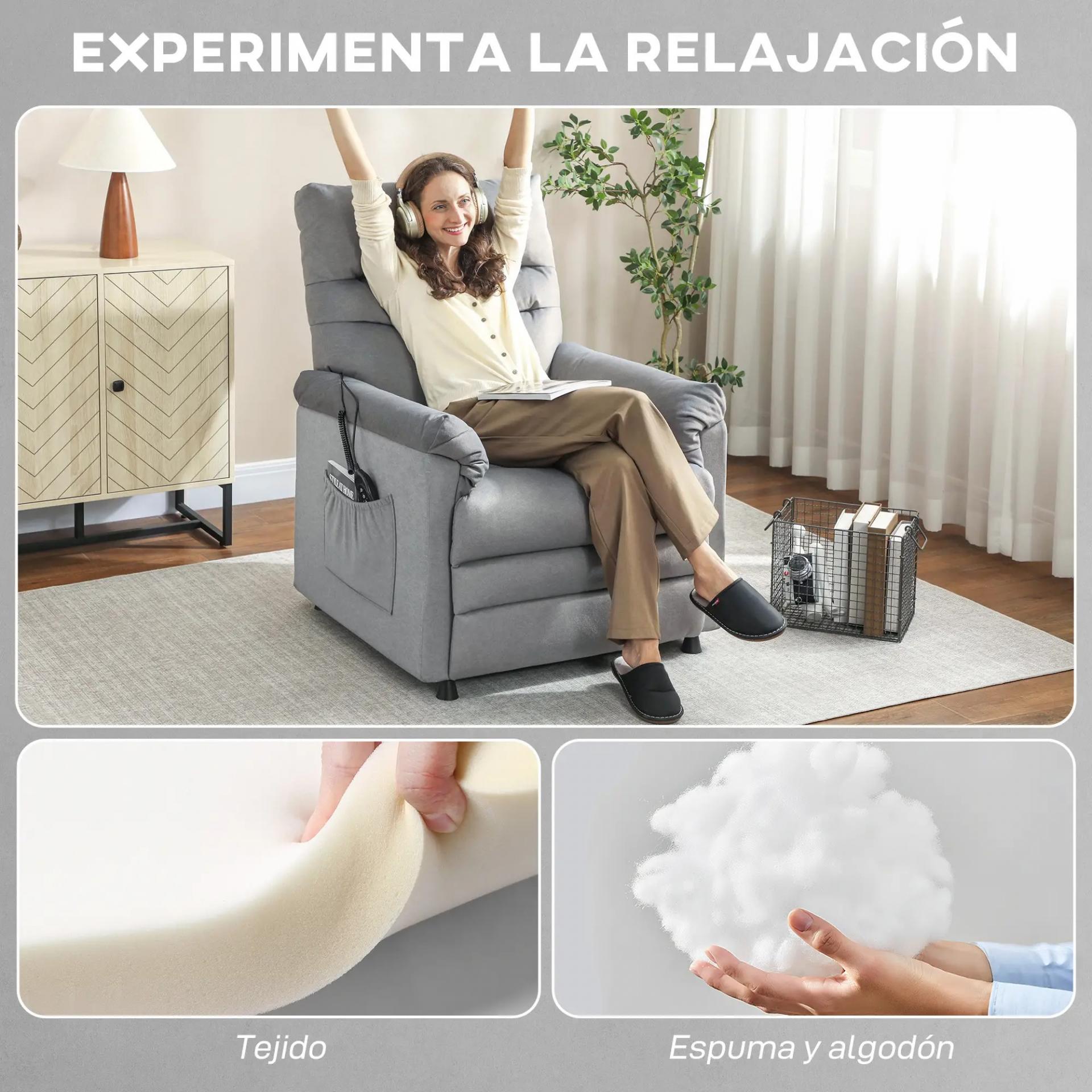 COMODIDAD ENVOLVENTE: Disfruta de un descanso total con el respaldo de este sillón reclinable, relleno con un acolchado grueso y mullido de 18 cm. Además, aprovecha sus bolsillos laterales para tenerlo todo a mano mientras te relajas