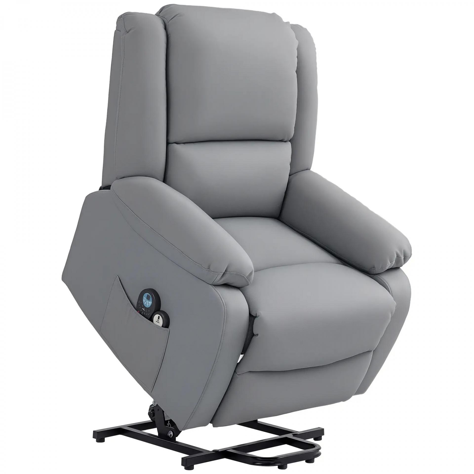 Sillón Levanta Personas Eléctrico con 8 Punto de Masaje Función de Calentamiento 2 Controles Remotos y Bolsillo Gris