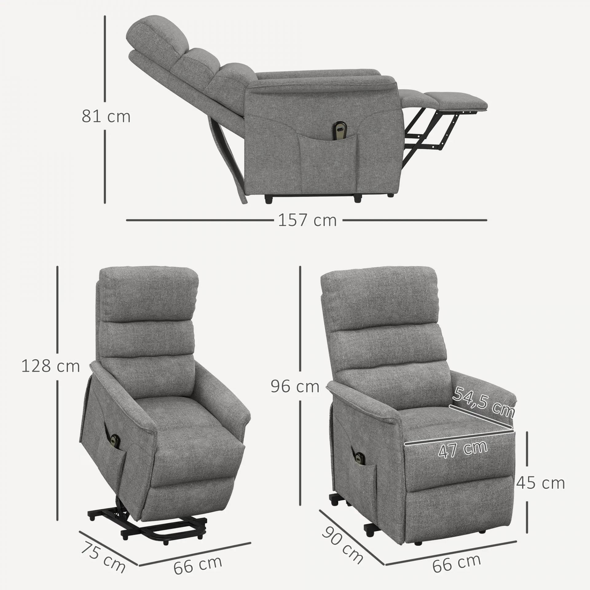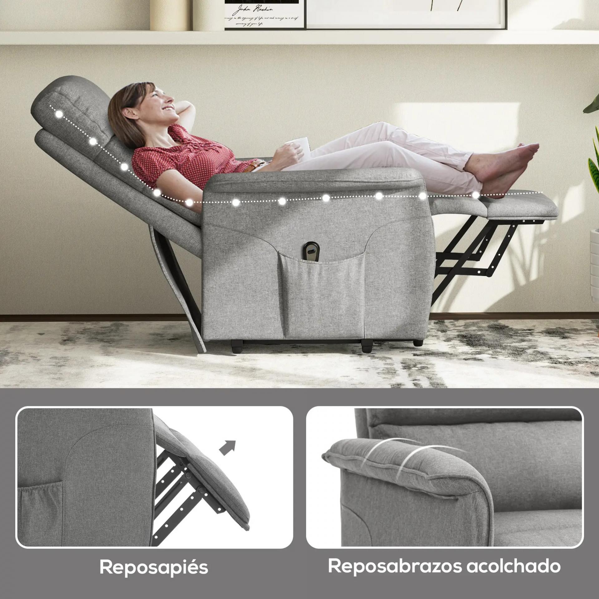 Sillón Relax Reclinable Eléctrico Levanta Personas con Mando a Distancia y Bolsillo Lateral Sillón Elevador Gris