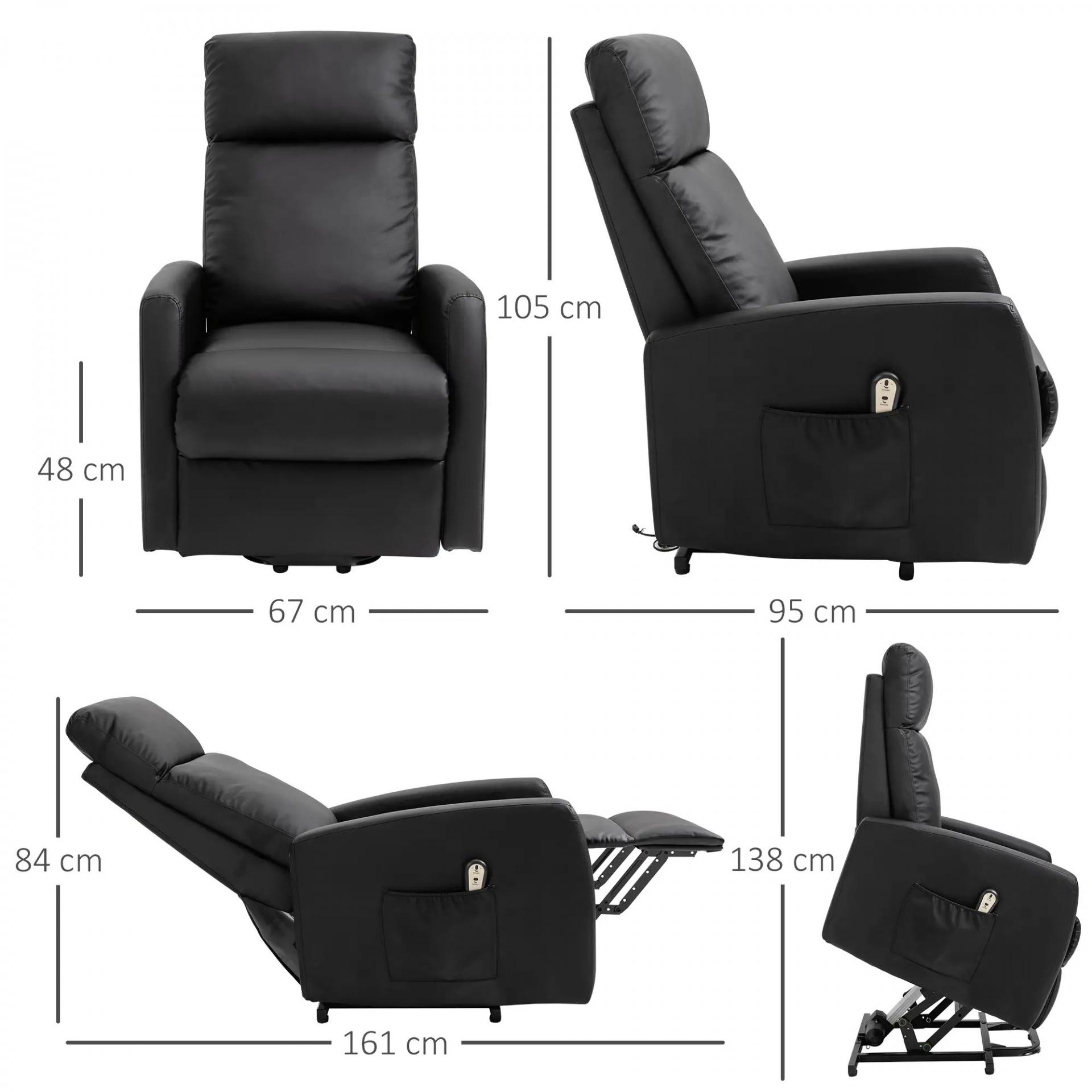 Sillón Levanta Personas Sillón Relax Eléctrico Sillón Elevador Reclinable 145° con Control Remoto 67x95x105 cm Negro