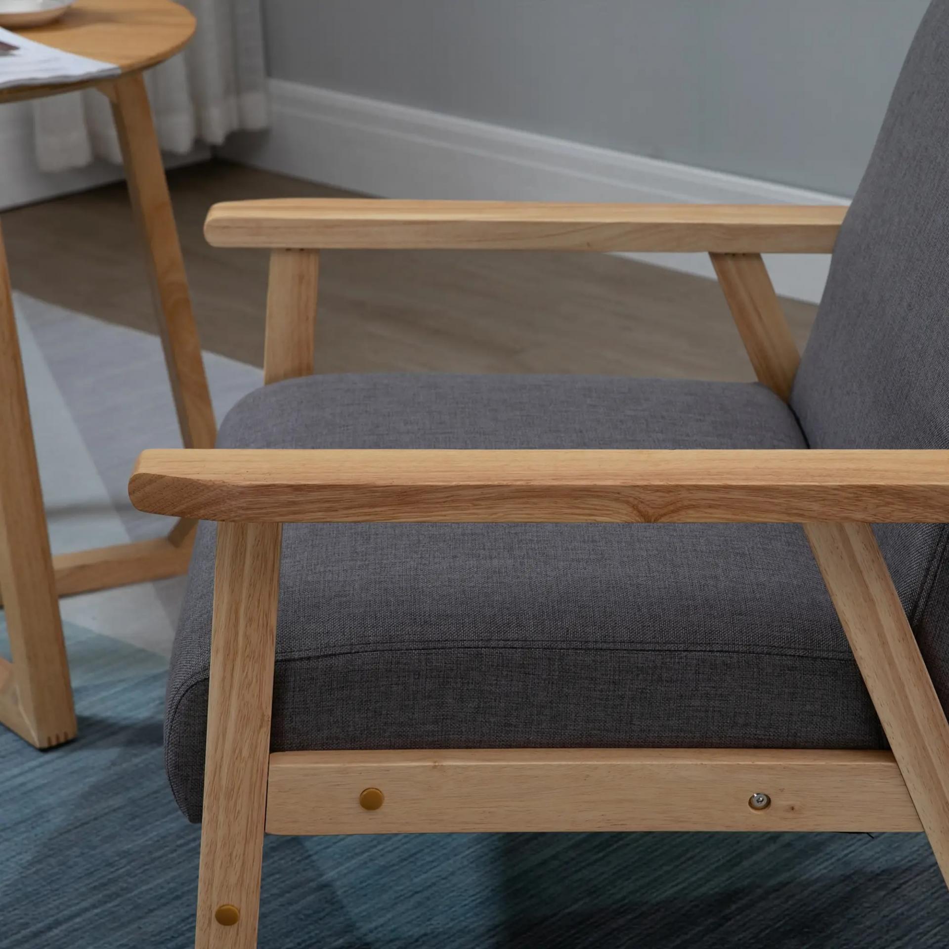 Sillón en Diseño Escandinavo Sillón de Acento Madera Maciza Aspecto de Lino 64x70x72 cm Gris+ Natural