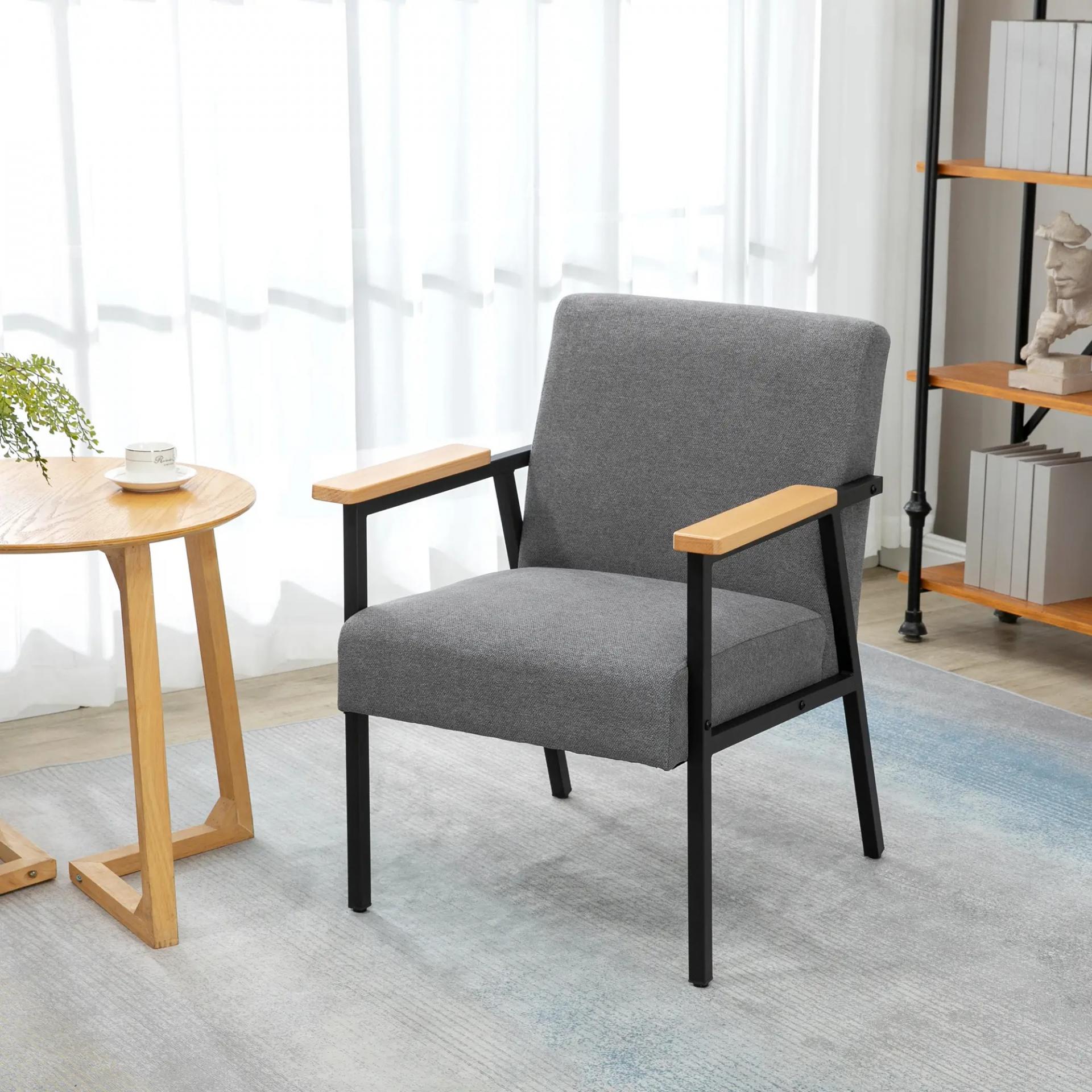 Butaca de Salón Moderna Tapizado en Poliéster con Reposabrazos de Madera para Dormitorio 64,5x70x83,5 cm Gris