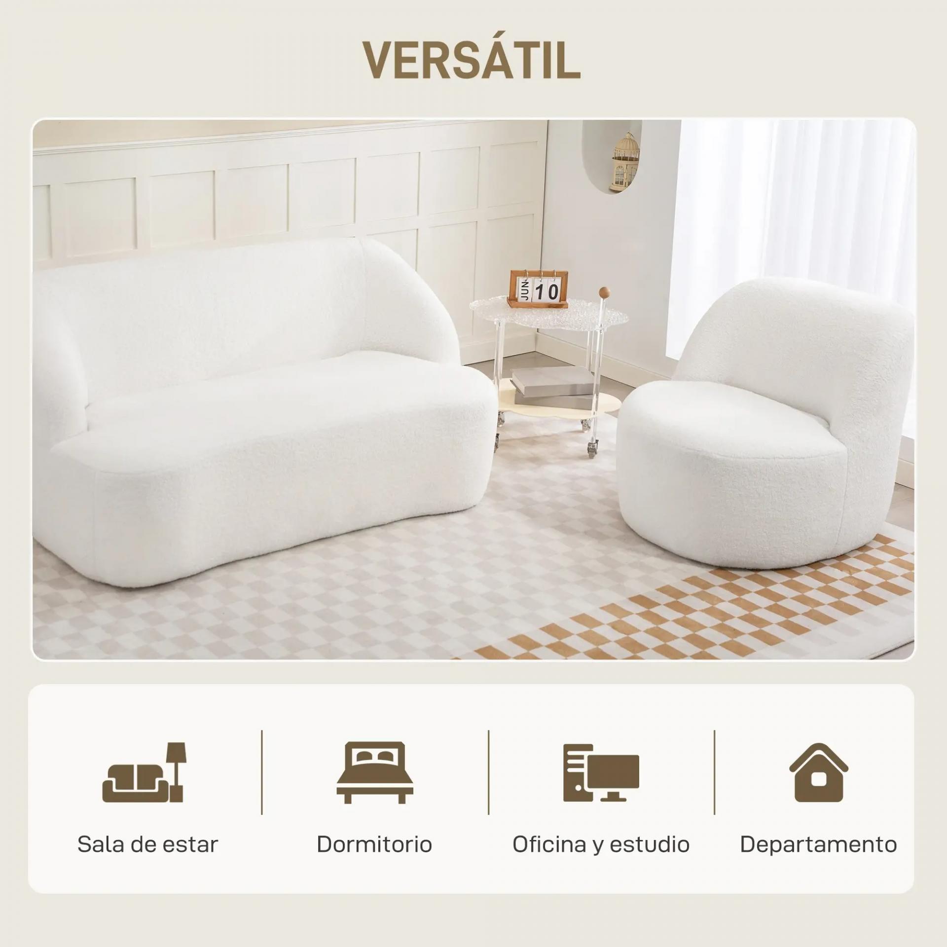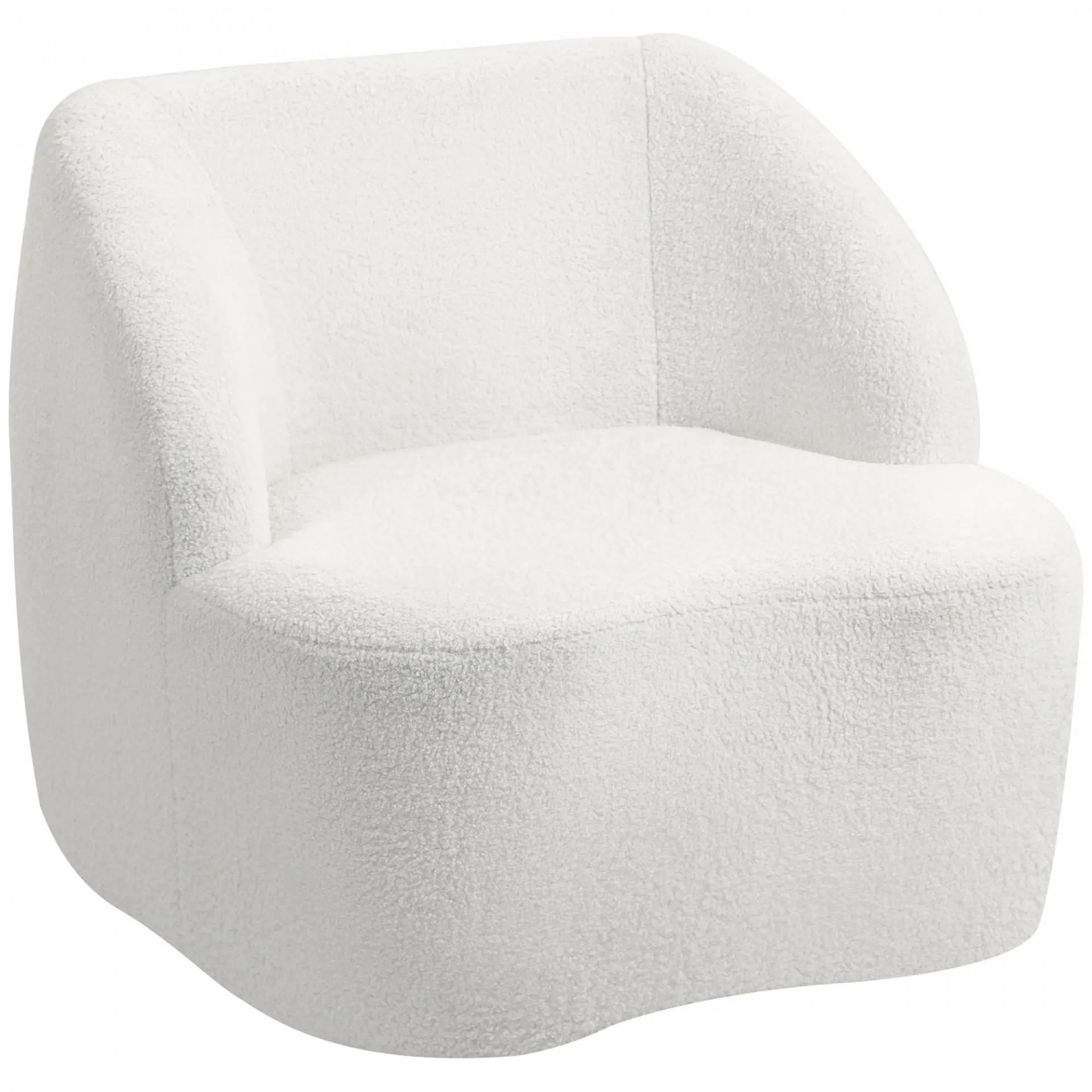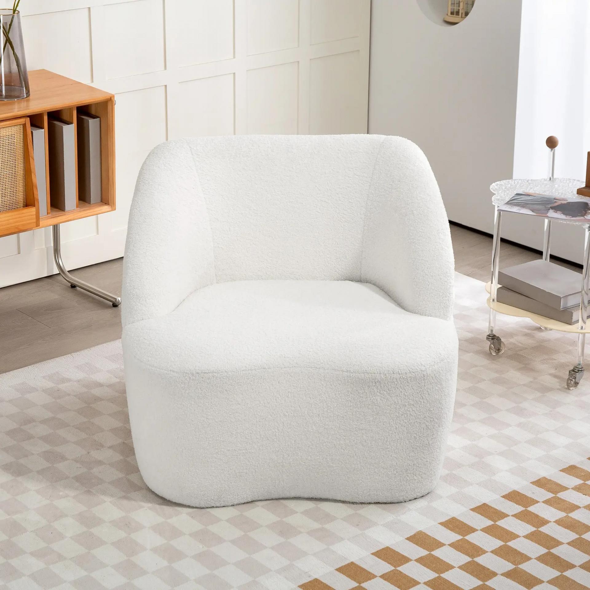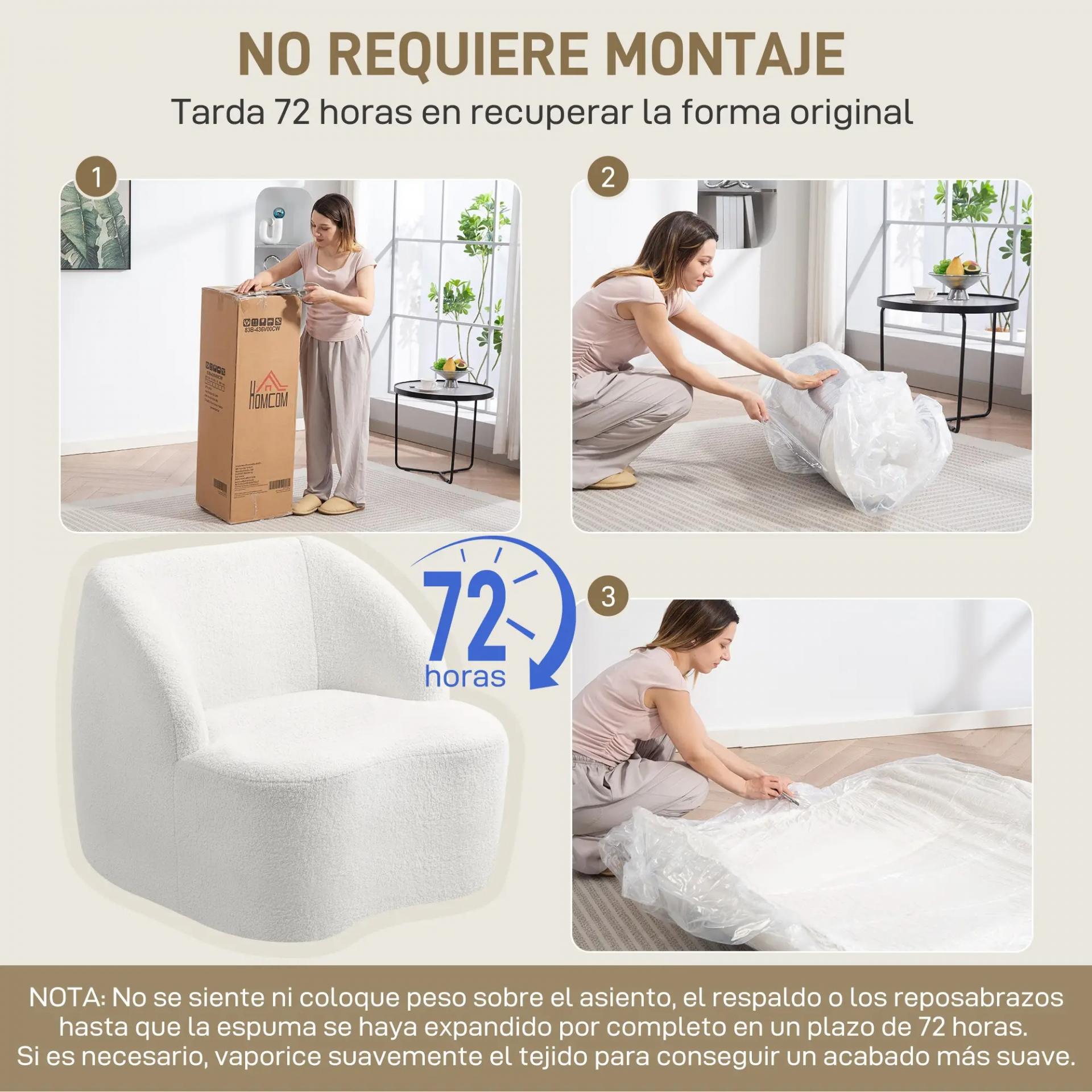 Sillón de Lectura Tapizado en Borreguito Diseño Curvo Acolchado Grueso No Requiere Montaje Crema