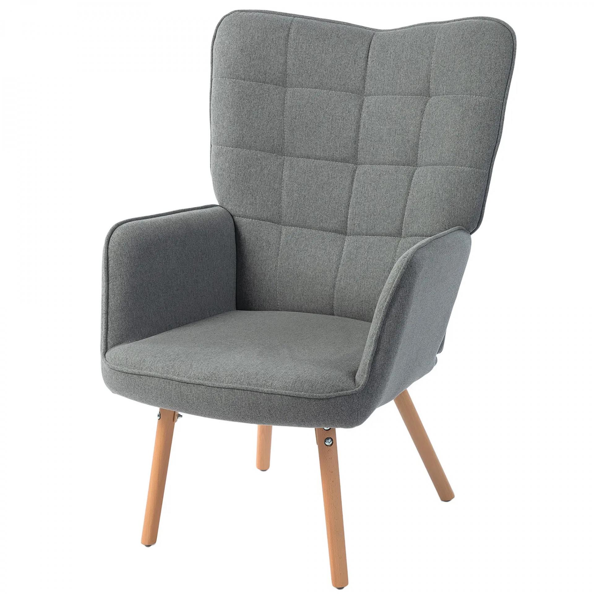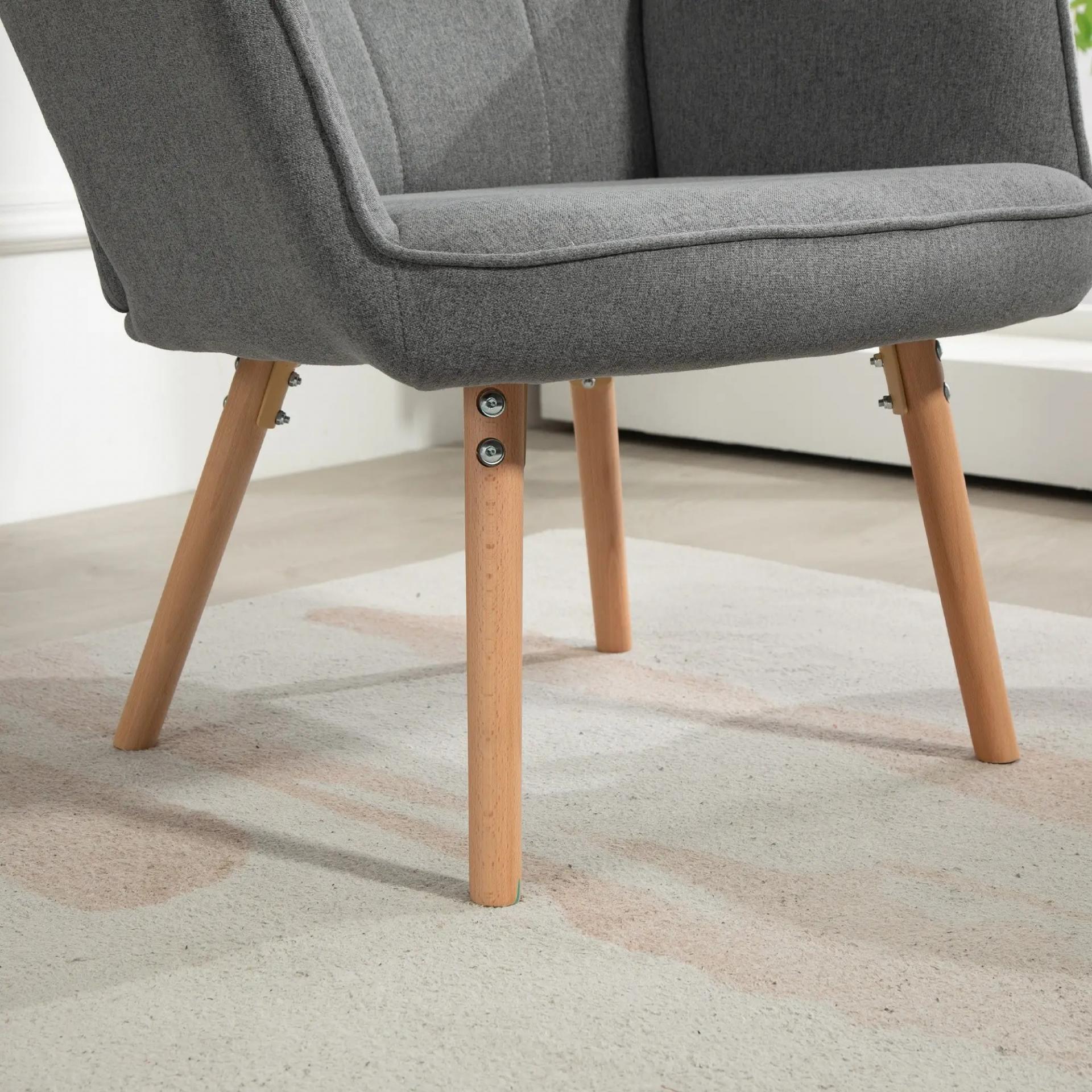 Butaca de Dormitorio con Respaldo Alto Reposabrazos Tela de Lino y Patas de Madera para Sala de Estar 71x76x101 cm Gris
