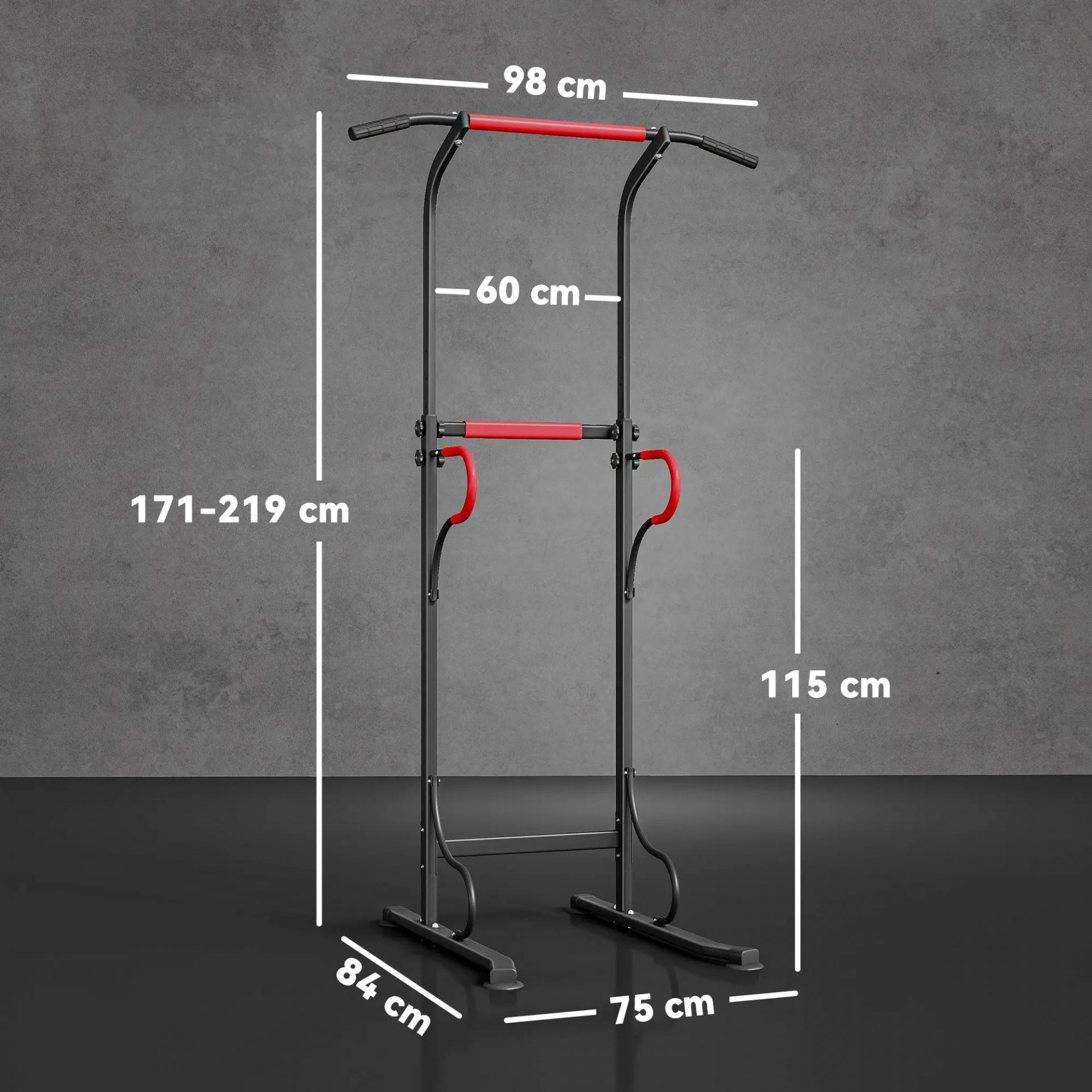 - ESTRUCTURA RESISTENTE: La barra de dominadas y fondos de HOMCOM está fabricada en acero robusto, soporta hasta 120 kg y ofrece estabilidad durante el ejercicio, evitando movimientos indeseados o deformaciones