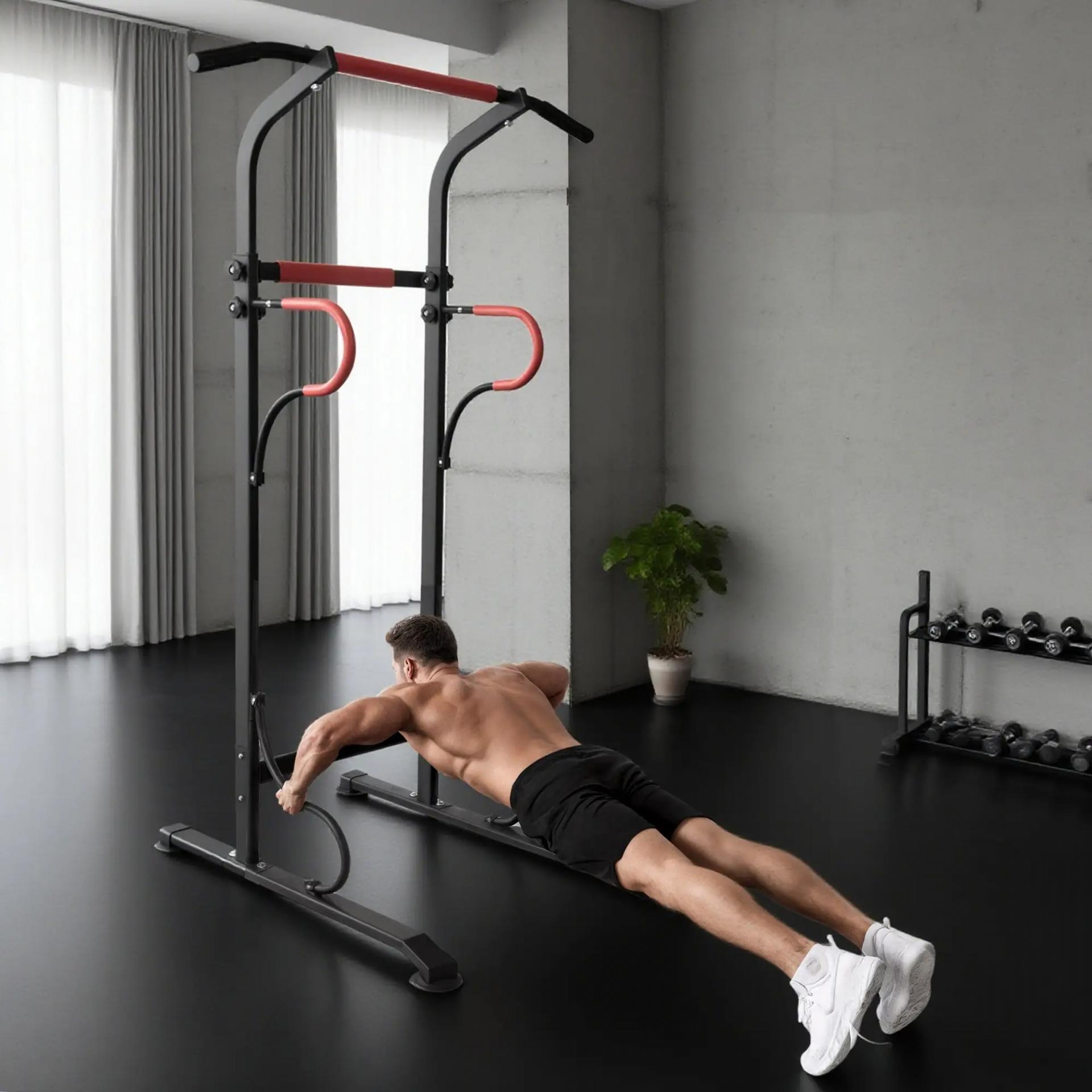 Barra de Dominadas Altura Regulable Estación de Fondos Resistente para Gimnasio en Casa Entrenamiento de Fuerza Negro