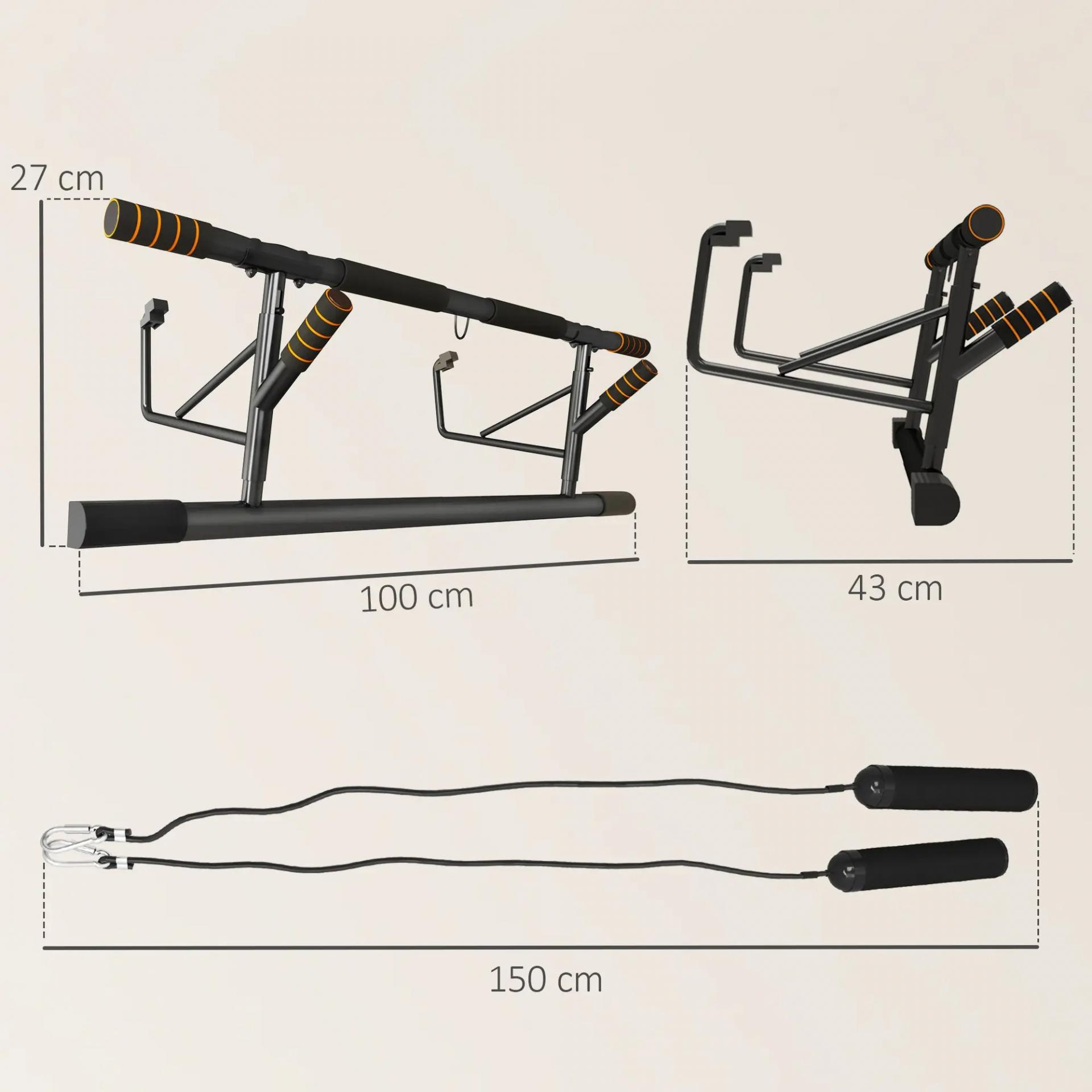 - SEGURO Y CÓMODO: Hecha de acero resistente, esta barra de dominadas de pared soporta hasta 150 kg. Tiene empuñaduras de espuma EVA antideslizante, asegurando un uso seguro y cómodo durante tus entrenamientos