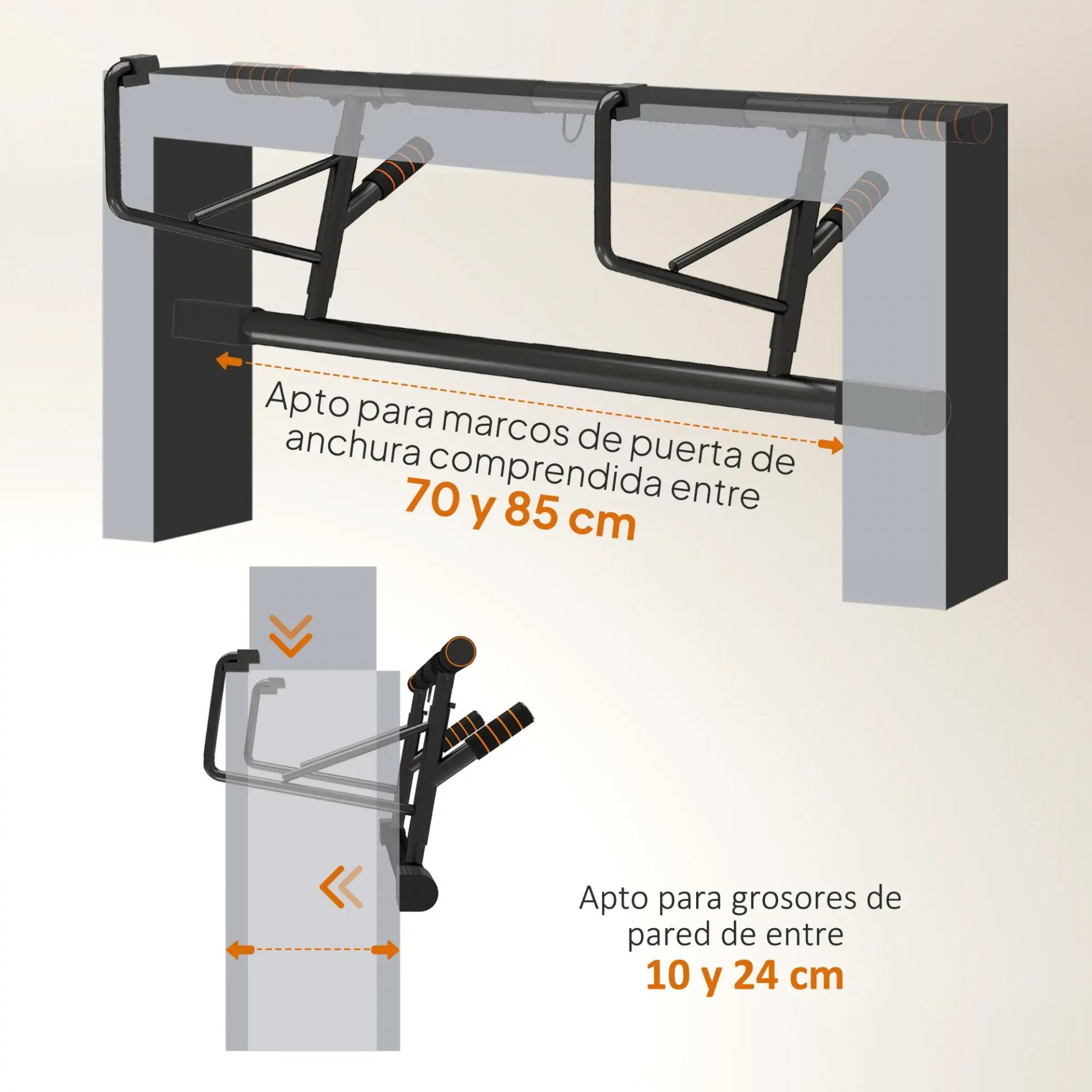 - INSTALACIÓN FÁCIL: Instala esta barra para dominadas sin complicaciones en el marco de tu puerta. Es adecuada para marcos de puerta de 70-85 cm y paredes de cemento o ladrillo macizo con un grosor de 10-24 cm