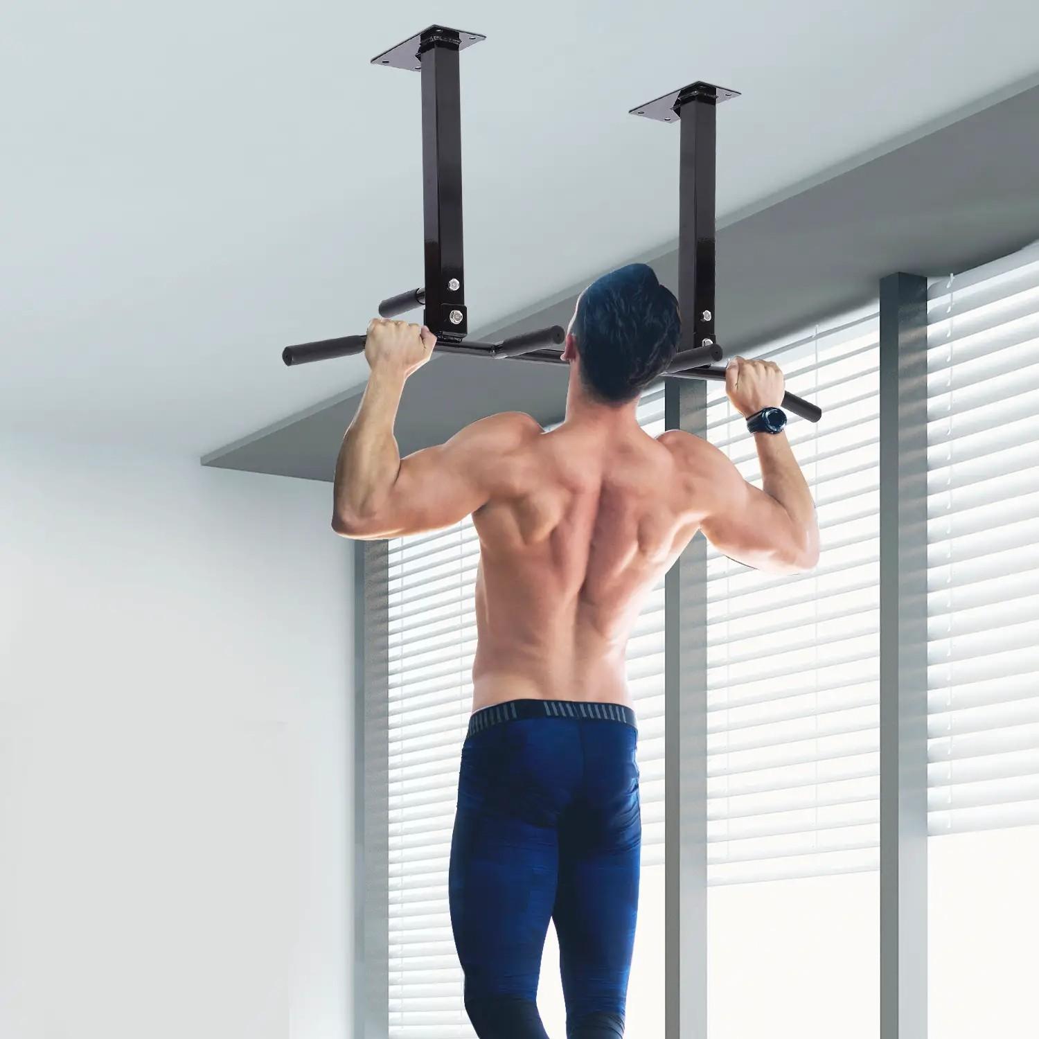- ENTRENAMIENTO DE CUERPO COMPLETO: La barra de dominadas en techo es perfecta para trabajar la espalda, los hombros, el pecho, los brazos, los tríceps, los bíceps, los abdominales y más. La solución perfecta para ejercitar tu cuerpo en casa, la oficina o sala de trabajo