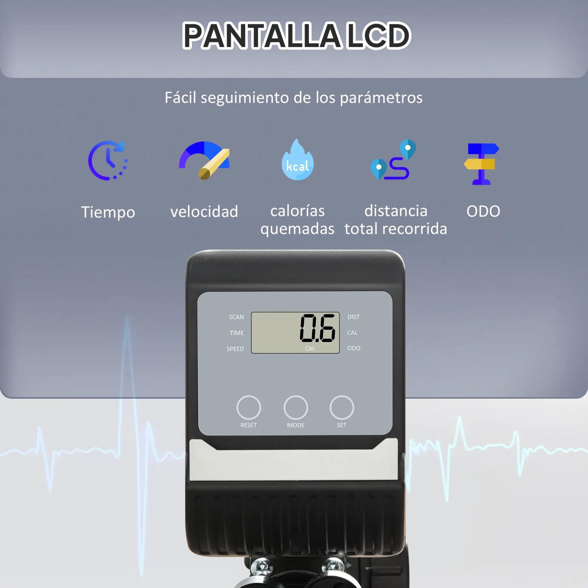 MONITOR LCD: Esta bicicleta estática reclinada incorpora una pantalla LCD que muestra tiempo, velocidad, calorías y distancia, para que puedas controlar fácilmente tu progreso mientras pedaleas sin distracciones
